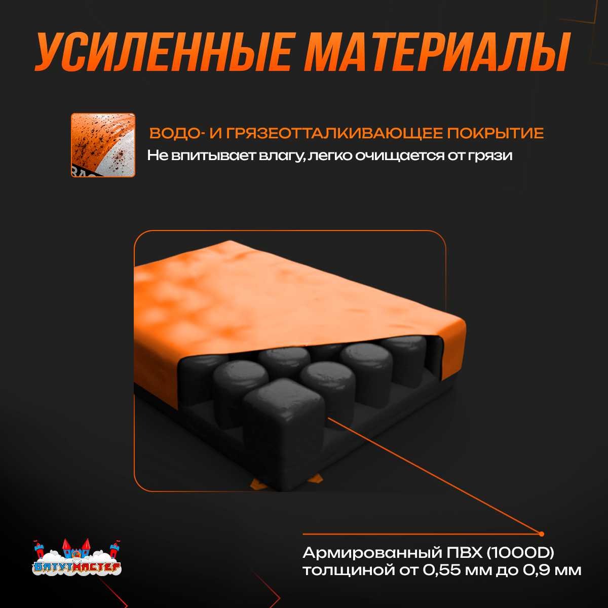 Многокамерная система с амортизирующими модулями равномерно распределяет нагрузку при приземлении, а жёсткая нижняя камера сохраняет устойчивость и форму подушки.