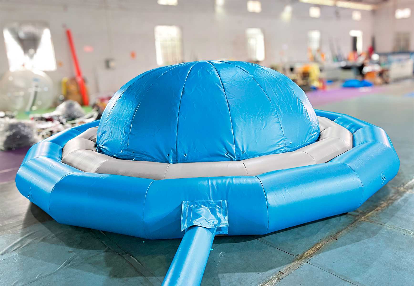 - Перед тем как надувать, убедитесь, что площадка ровная и очищена от мусора и острых предметов.