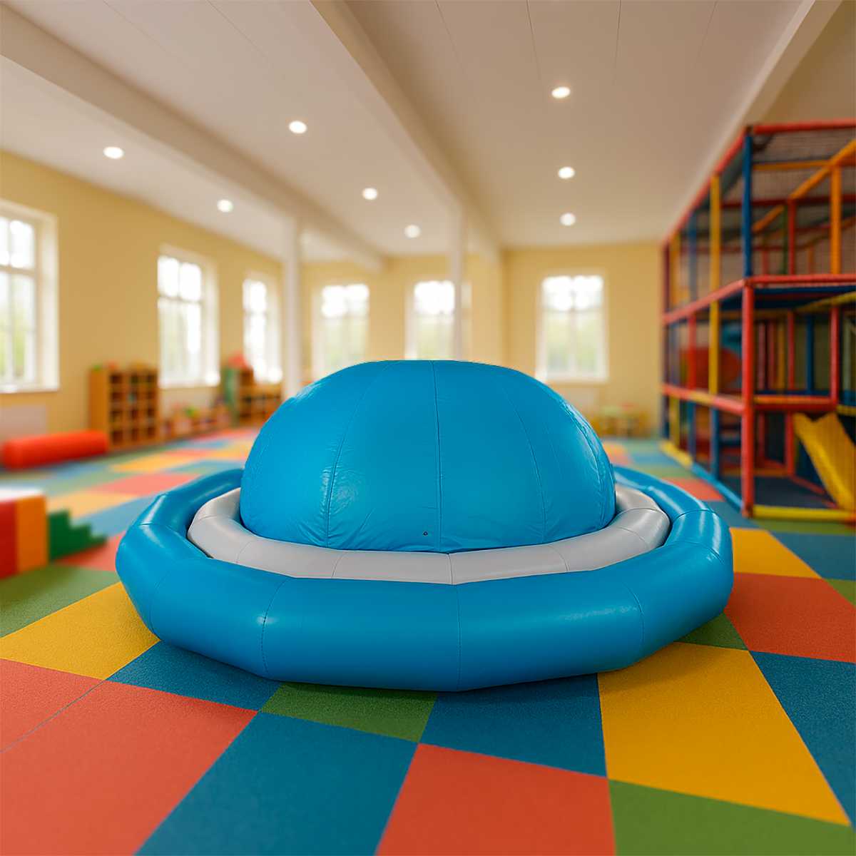 Надувное оборудование «Надувной Живот» 6*6*1,7 м — это яркий игровой аттракцион серо-голубого цвета, созданный для динамичных и увлекательных игр детей. Его необычная форма напоминает купол или мягкий холм, на котором можно бегать, прыгать, карабкаться и кататься. Такой модуль создаёт атмосферу веселья и активности, а также становится настоящим центром притяжения на любом мероприятии.