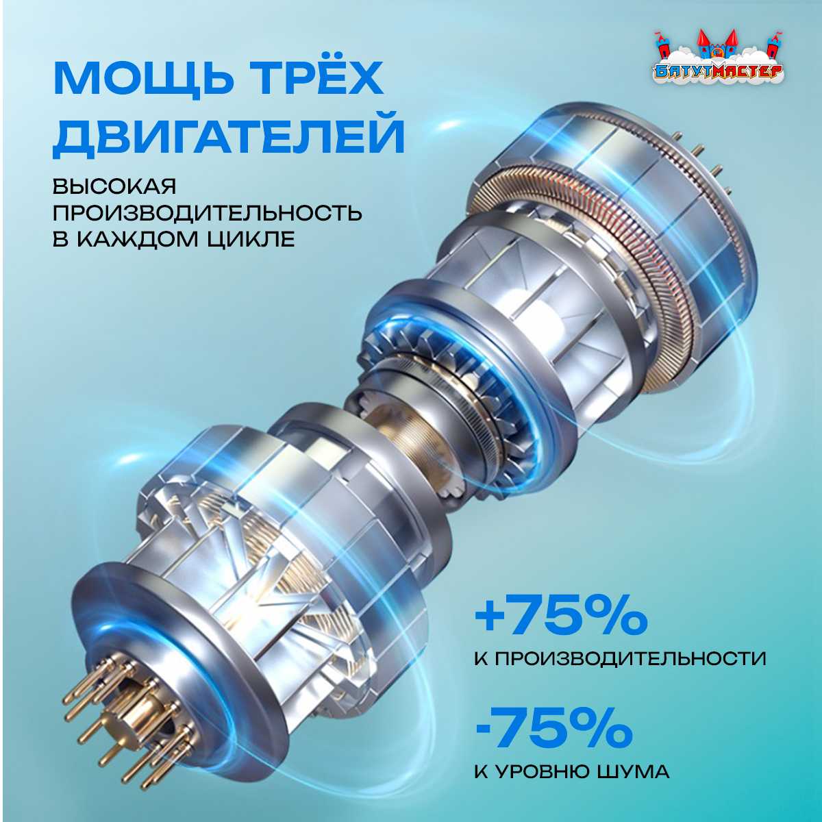 - Тишина и комфорт — уровень шума на 75% ниже, чем у аналогов.
