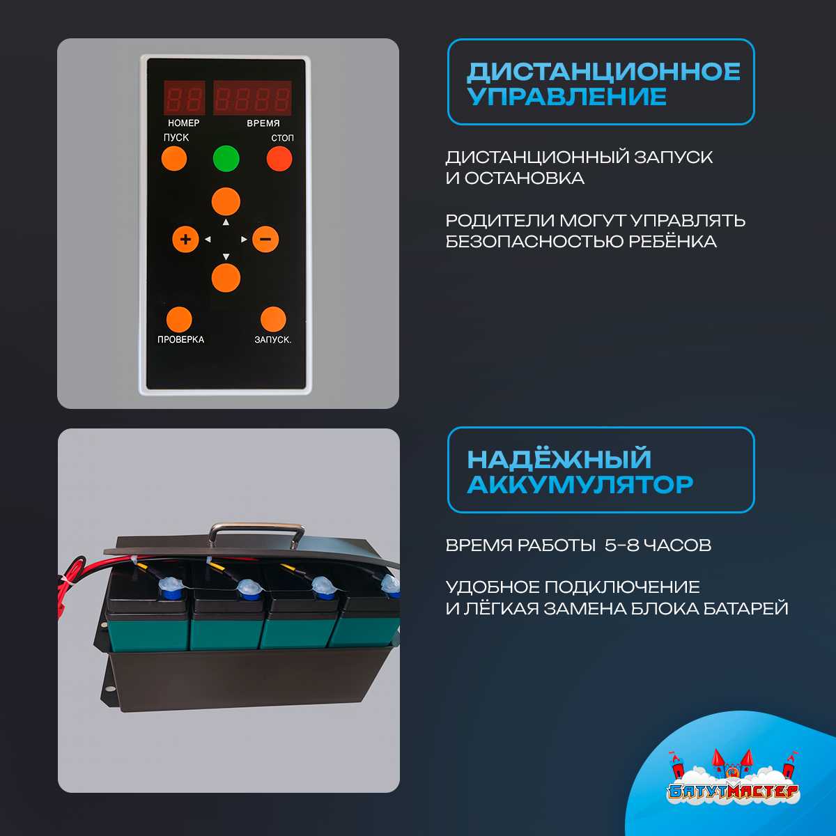 - Простая эксплуатация и замена аккумулятора.