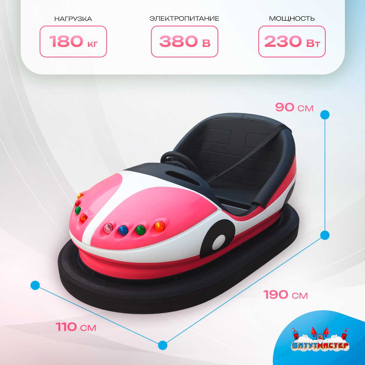 Бамперная машинка «Пинки» — это сочетание красоты, надёжности и ярких эмоций. Её привлекательный дизайн в розово-белых тонах понравится детям и подросткам, а прочная конструкция обеспечит долгий срок службы даже при интенсивной эксплуатации.