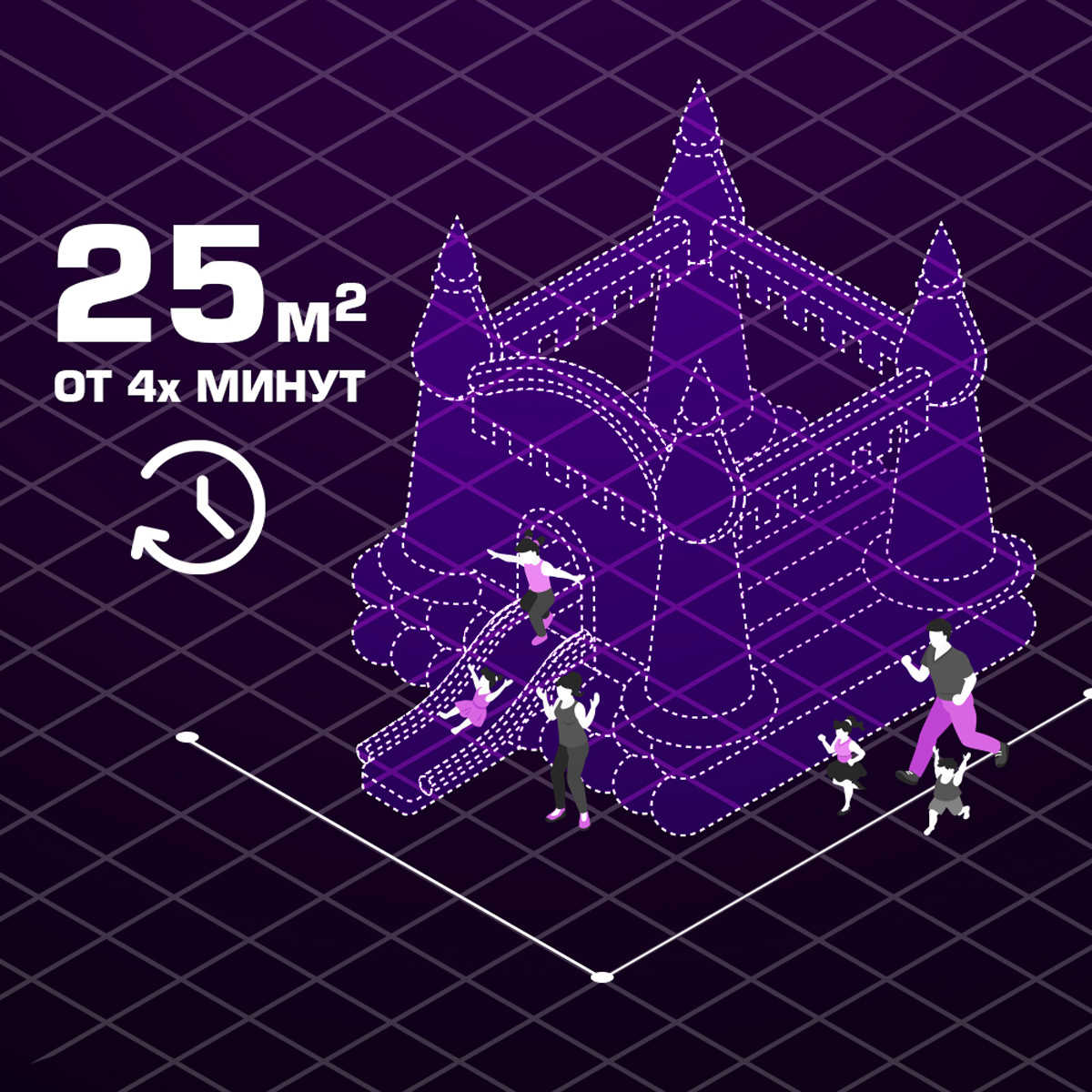 - Время откачки воздуха сокращается в разы — большие аттракционы можно собрать и упаковать всего за несколько минут.