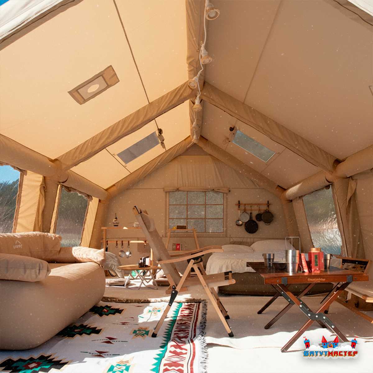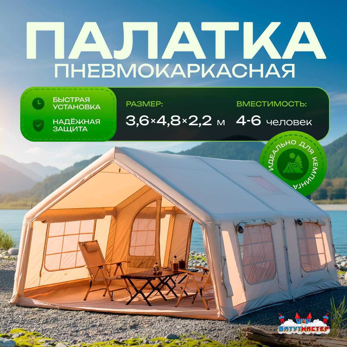 Пневмокаркасная палатка «Летний Уют» 4.8x3.6x2.2 м — это современное решение для комфортного отдыха на природе. Она совмещает в себе простор, простоту установки и защиту от любых капризов погоды. Благодаря своим габаритам и продуманной конструкции палатка подходит как для семейных путешествий, так и для коммерческого использования в кемпингах и глэмпингах.