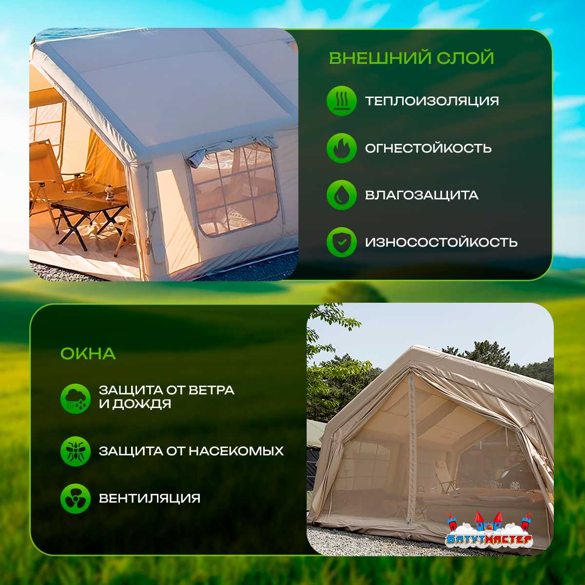 Пневмокаркасная палатка «Летний Уют» 4.8x3.6x2.2 м — это настоящий мобильный дом, созданный для тех, кто хочет отдыхать с комфортом. Она сочетает в себе простоту установки, долговечность и простор, обеспечивая уют в любой ситуации.
