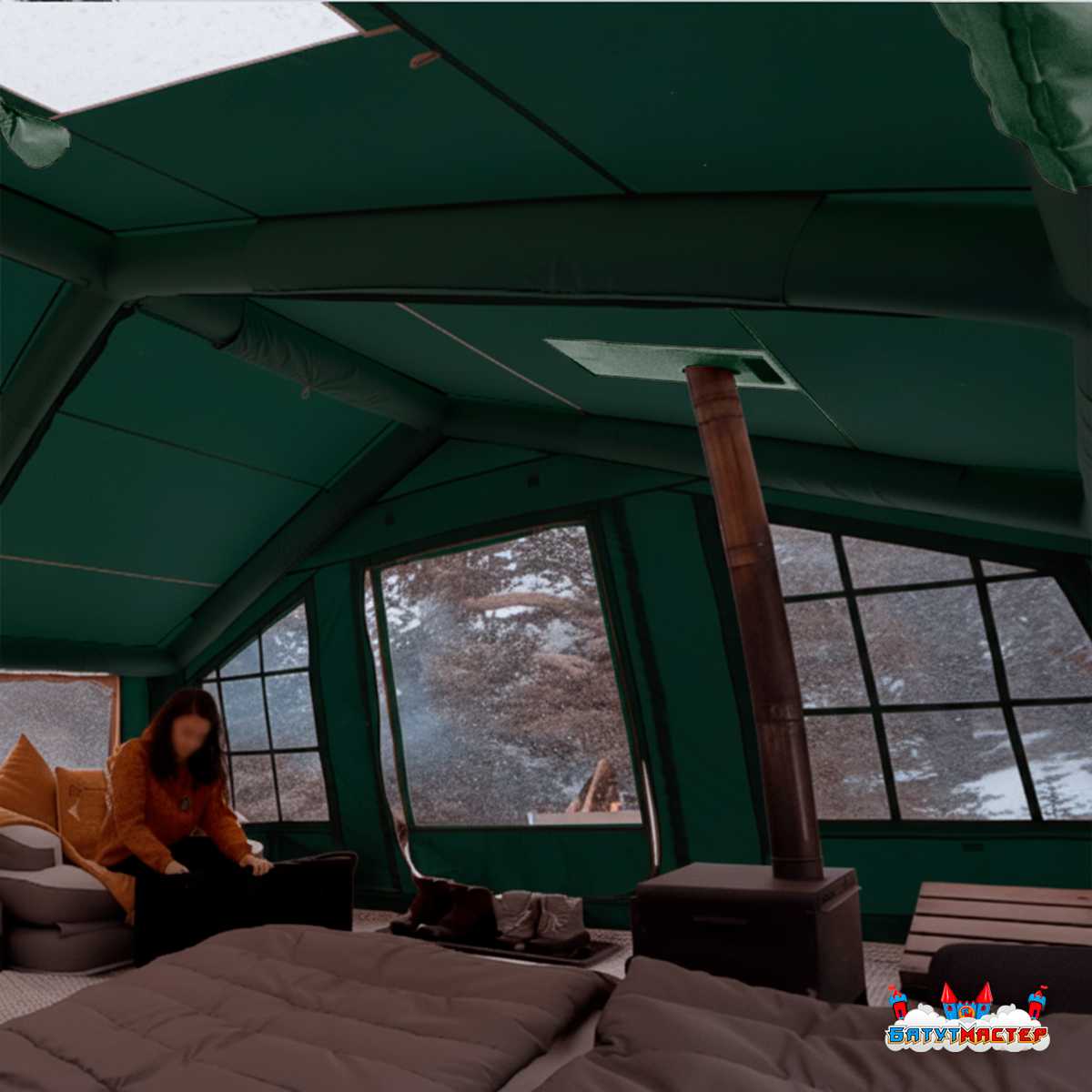 Палатка адаптирована для круглогодичного использования: от -15°C до +40°C. В холодную погоду ПВХ-балки могут стать жёсткими — это естественно. Давление воздуха при понижении температуры падает, поэтому важно его контролировать и при необходимости подкачивать.