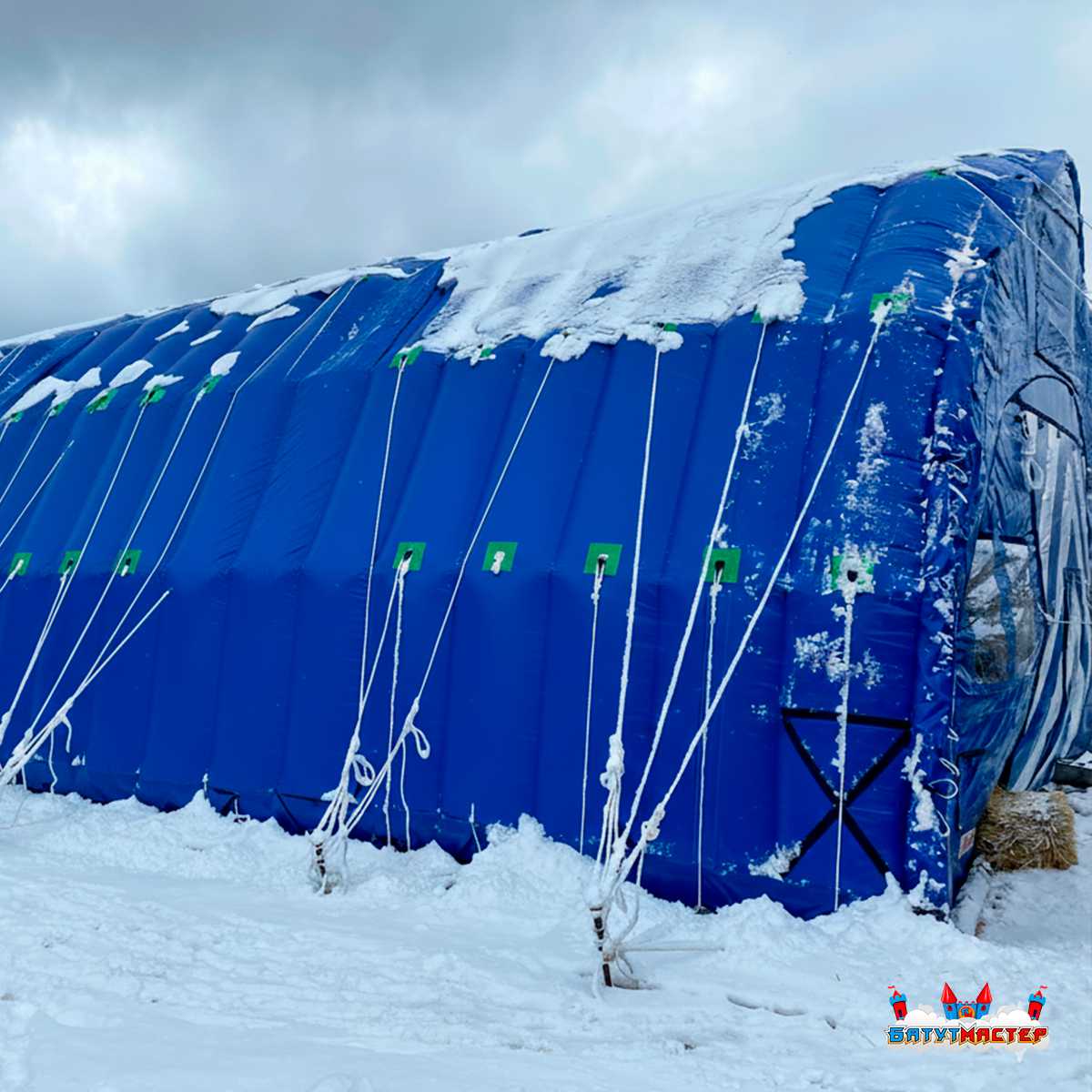 Основу составляет прочная армированная ПВХ-ткань, устойчивая к ультрафиолету, осадкам и перепадам температур. Воздушные секции формируют надёжный каркас, обеспечивая устойчивость к ветровым нагрузкам и снегу. Благодаря герметичности и теплоизоляционным свойствам материал сохраняет комфортную температуру внутри даже при отрицательных температурах.