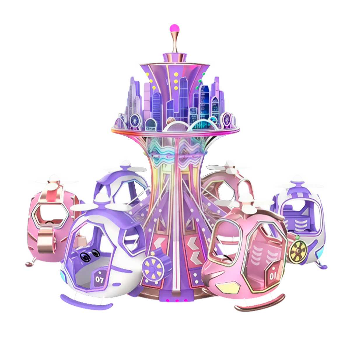 Электрическая карусель «Вертолётная прогулка» 5,5×5,5×3 м — это уникальный детский аттракцион с функцией подъёма кабин, создающий эффект лёгкого полёта. Каждый маленький пассажир чувствует себя настоящим пилотом, поднимаясь вверх на своём «вертолёте». Современный дизайн, плавная механика и яркая светодиодная подсветка делают этот аттракцион центром внимания на любой площадке.