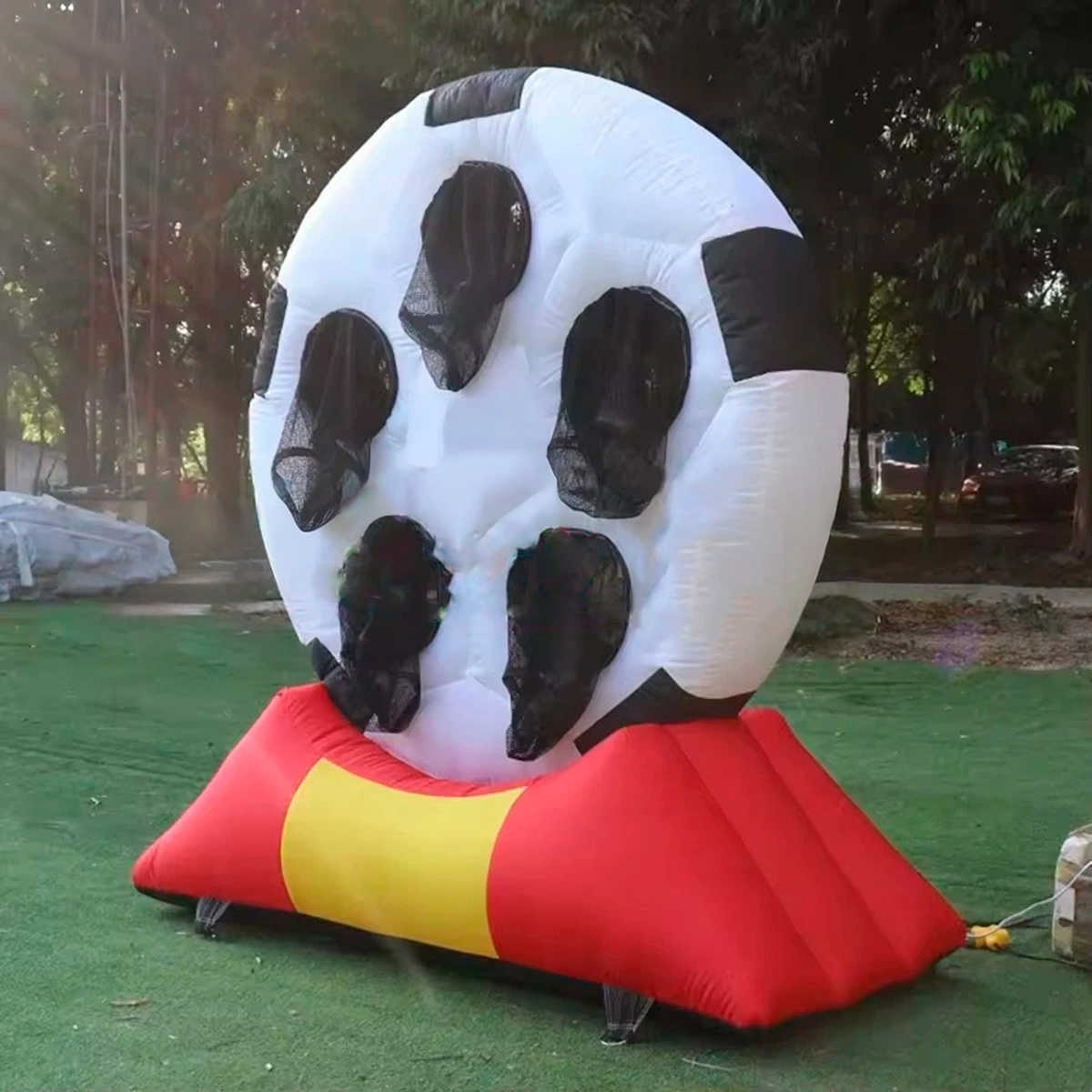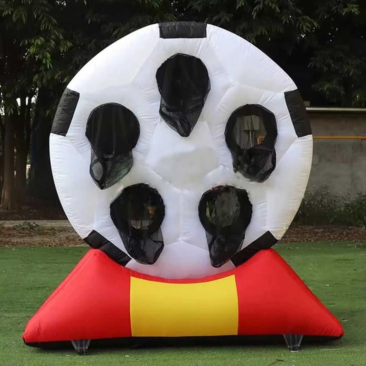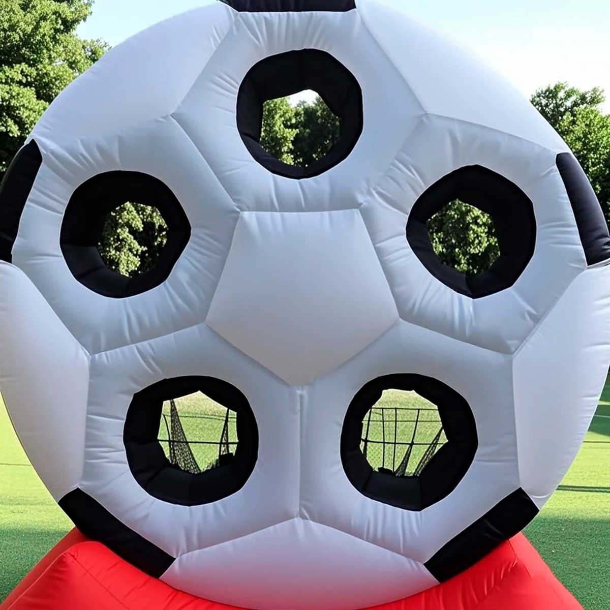 Надувной футбольный дартс «Гол» — это динамичная игра, где участники стараются попасть мячом в целевые отверстия, расположенные на поверхности в форме футбольного мяча.
