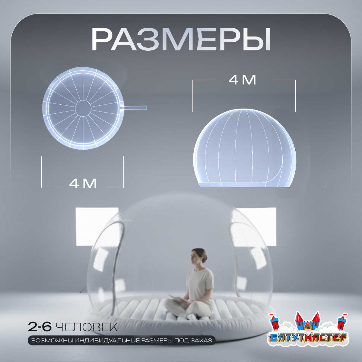 - купол «BubbleTrees» ТПУ с надувным дном 4×4×3 м;