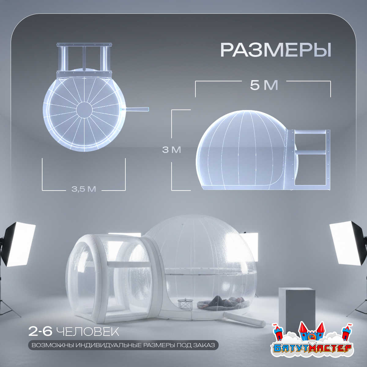 - прозрачная палатка «BubbleTrees» ТПУ без надувного дна 5×3,5×3 м;