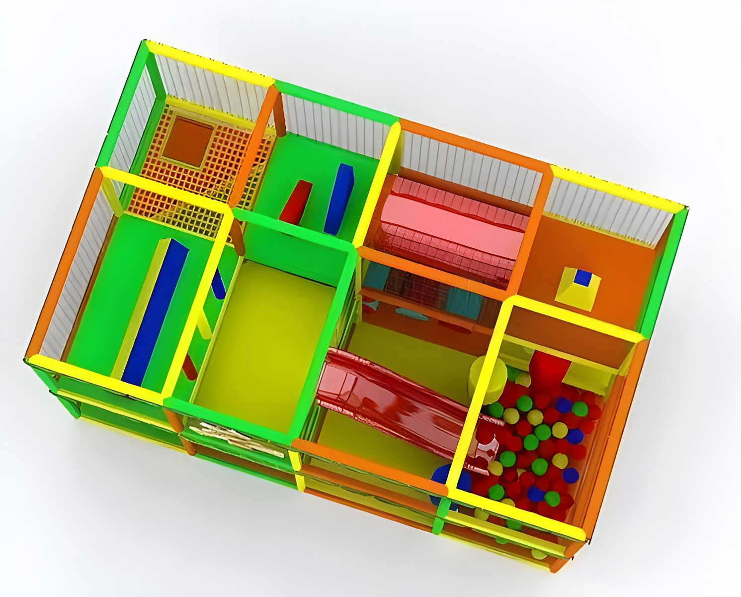 На 32 м² создаётся динамичный игровой маршрут без скучных пауз, где дети двигаются, смеются и возвращаются снова и снова.