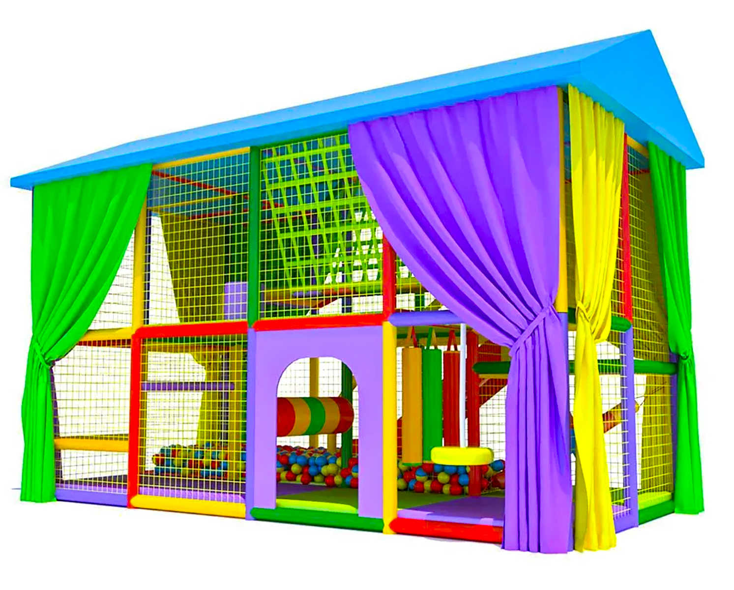Нужна детская зона, которая поместится даже в небольшом помещении, но даст «вау-эффект» и стабильно будет приводить семьи? «Праздничный домик» — двухуровневый детский игровой лабиринт 4.8x2.4x3.1 м с крышей и праздничной тематикой. Он превращает 11,52 м² в яркую сцену эмоций: дети активно играют, родители задерживаются дольше, а вы получаете прогнозируемый доход при правильной загрузке.