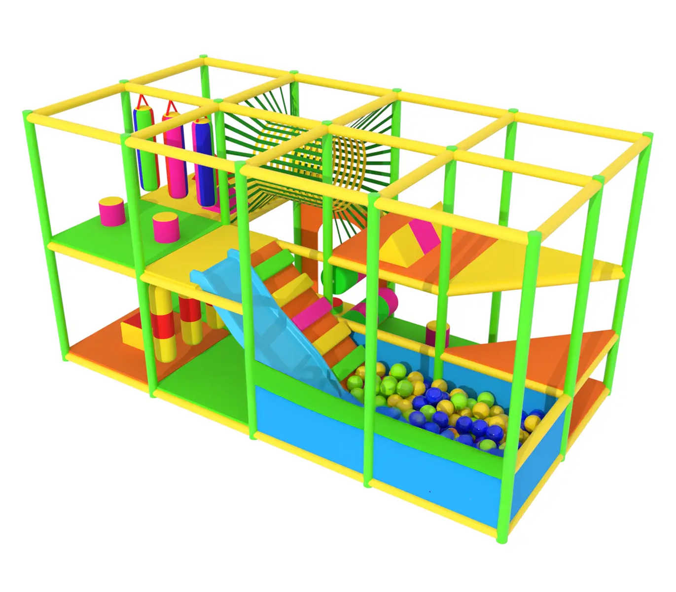 Благодаря двухуровневой компоновке дети могут перемещаться по разным зонам, не мешая друг другу. Игровой маршрут постоянно поддерживает интерес: здесь нет «мёртвых зон» — движение непрерывное, а радость бесконечна.