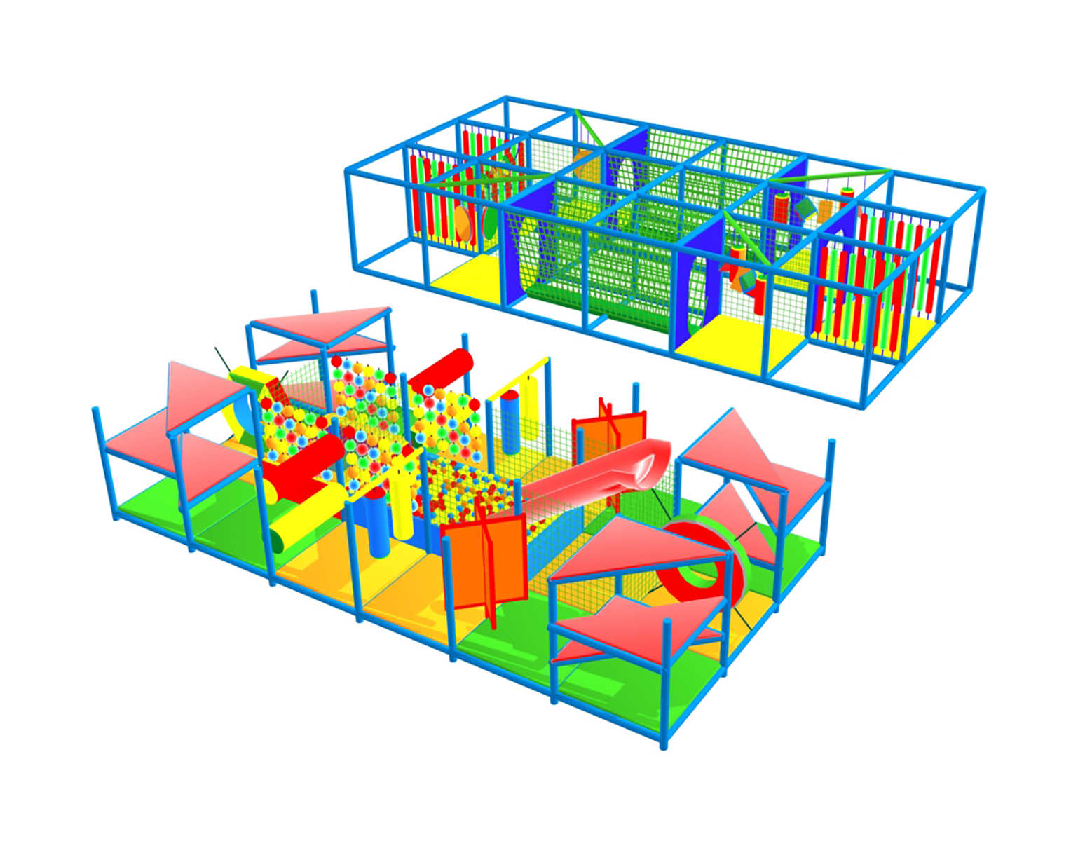 🟢 Сетчатые переходы и тоннели создают эффект «воздушных троп», по которым малыши путешествуют, как по небу;