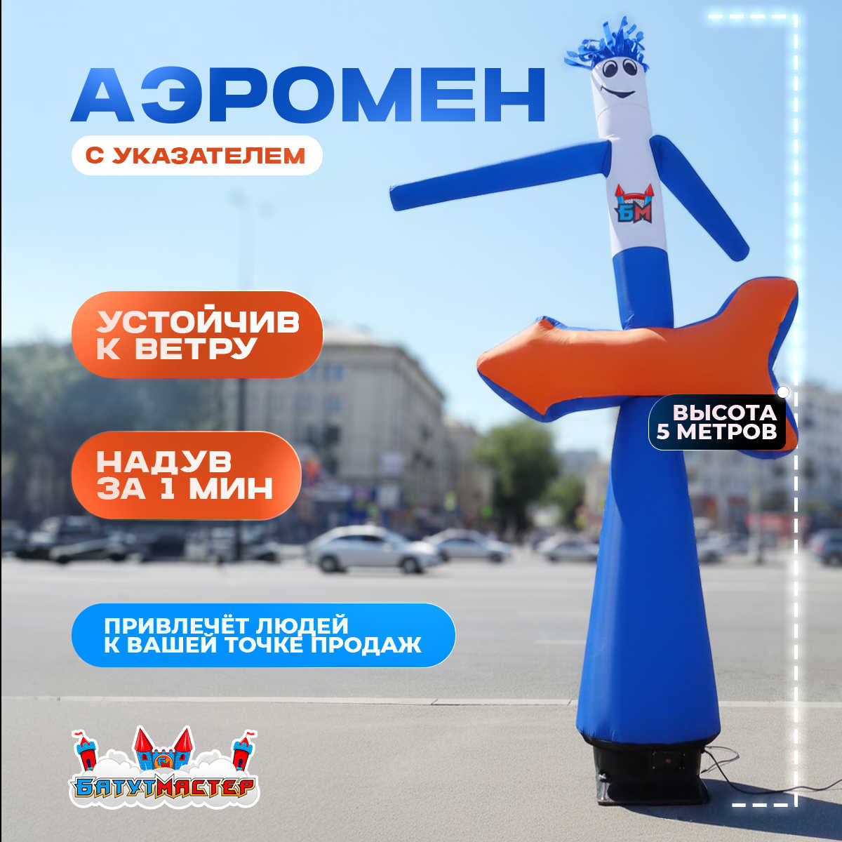 Аэромен «С указателем» 5 метров — это не просто реклама, а мощный помощник в привлечении клиентов! Он виден издалека, вызывает интерес и направляет внимание туда, где находитесь именно вы.