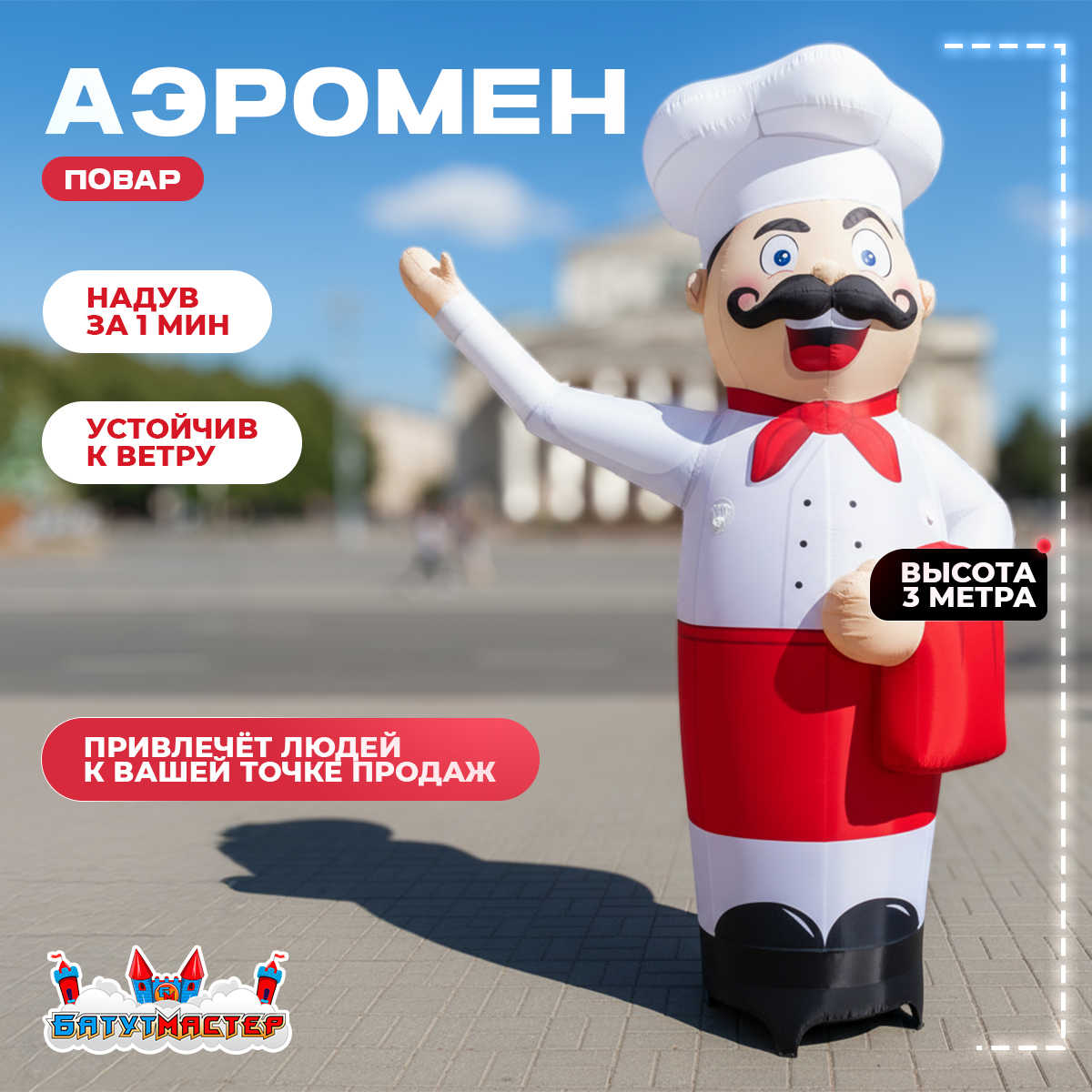 Аэромен «Повар» с машущей рукой, 3 метра — это не просто реклама, а ваш самый харизматичный сотрудник! Он работает без усталости, создаёт настроение и приглашает гостей с улыбкой.