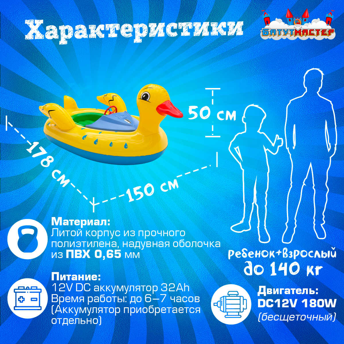 Электрическая бамперная лодка «Утёнок» XL — это надёжный, прибыльный и невероятно привлекательный аттракцион, который станет центром внимания на любой водной площадке. Установите его — и уже в первый день вы увидите рост интереса и увеличение прибыли. Сделайте свой бизнес ярче и успешнее прямо сейчас!