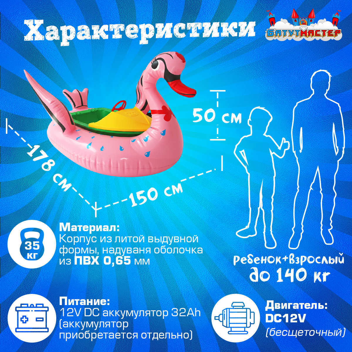 Это не просто аттракцион — это готовое решение для запуска прибыльного бизнеса в сфере развлечений. Благодаря XL-формату лодка выдерживает до 140 кг, что позволяет кататься как детям, так и взрослым, включая семейные пары «родитель + ребёнок». Такой формат значительно увеличивает поток клиентов и повышает доходность аттракциона.