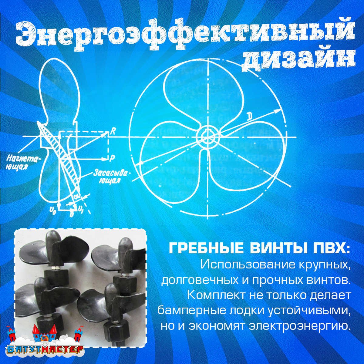 В основе лодки — высокоэффективный бесщёточный двигатель DC12V, отличающийся экономичным расходом энергии и долговечностью. Такой двигатель не перегревается даже при длительной работе и безопасен благодаря отсутствию искрообразования. Он приводит в движение гребной винт, который мягко и безопасно толкает лодку по воде.