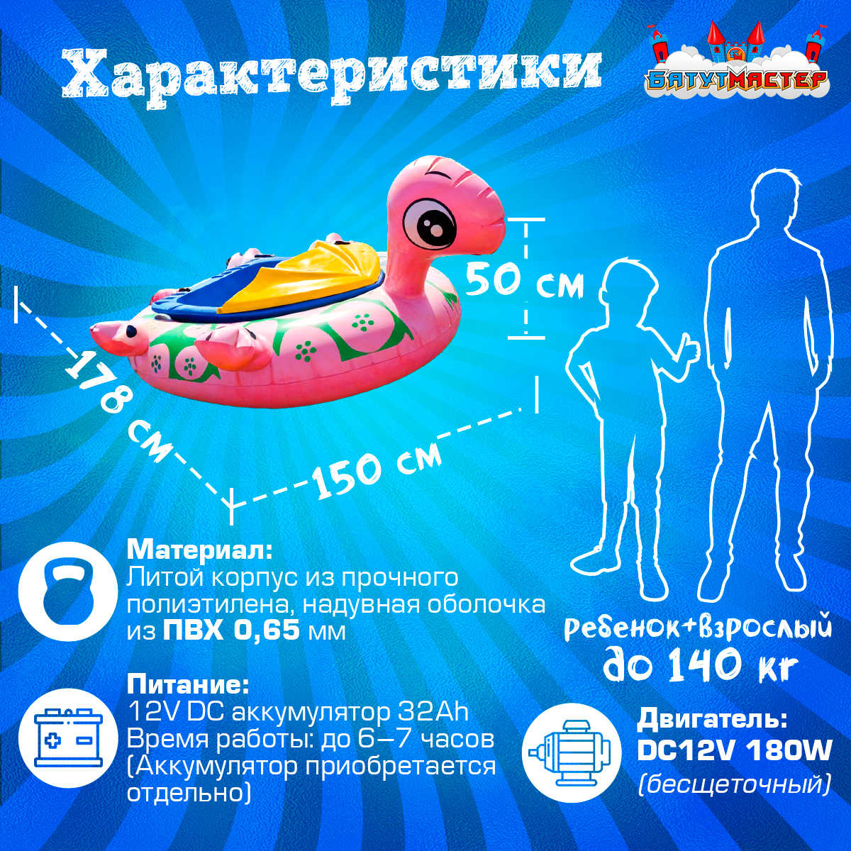 Электрическая бамперная лодка «Черепашка» XL — это стильный, надёжный и коммерчески успешный водный аттракцион, который создаёт яркие эмоции для посетителей всех возрастов. Благодаря милому и узнаваемому образу розовой черепашки лодка моментально привлекает внимание детей, подростков и взрослых.