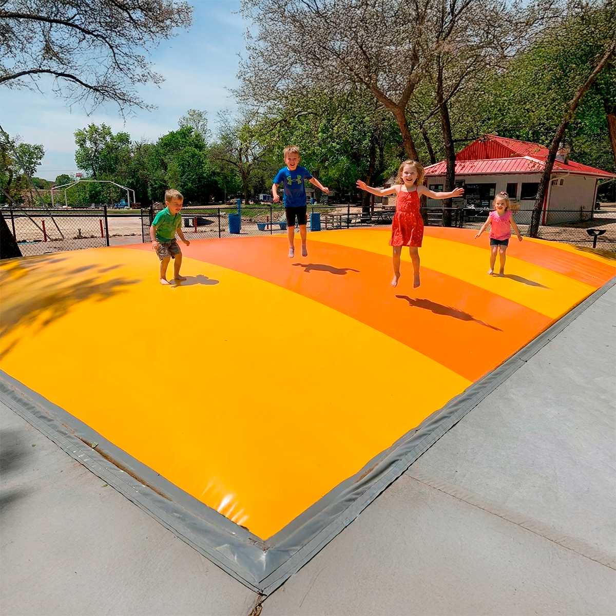 Представьте, как дети с восторгом прыгают на огромной подушке, а родители с удовольствием наблюдают за этим с лавочек поблизости. Пространство сразу оживает и наполняется энергией — именно это запоминается и побуждает вернуться снова.