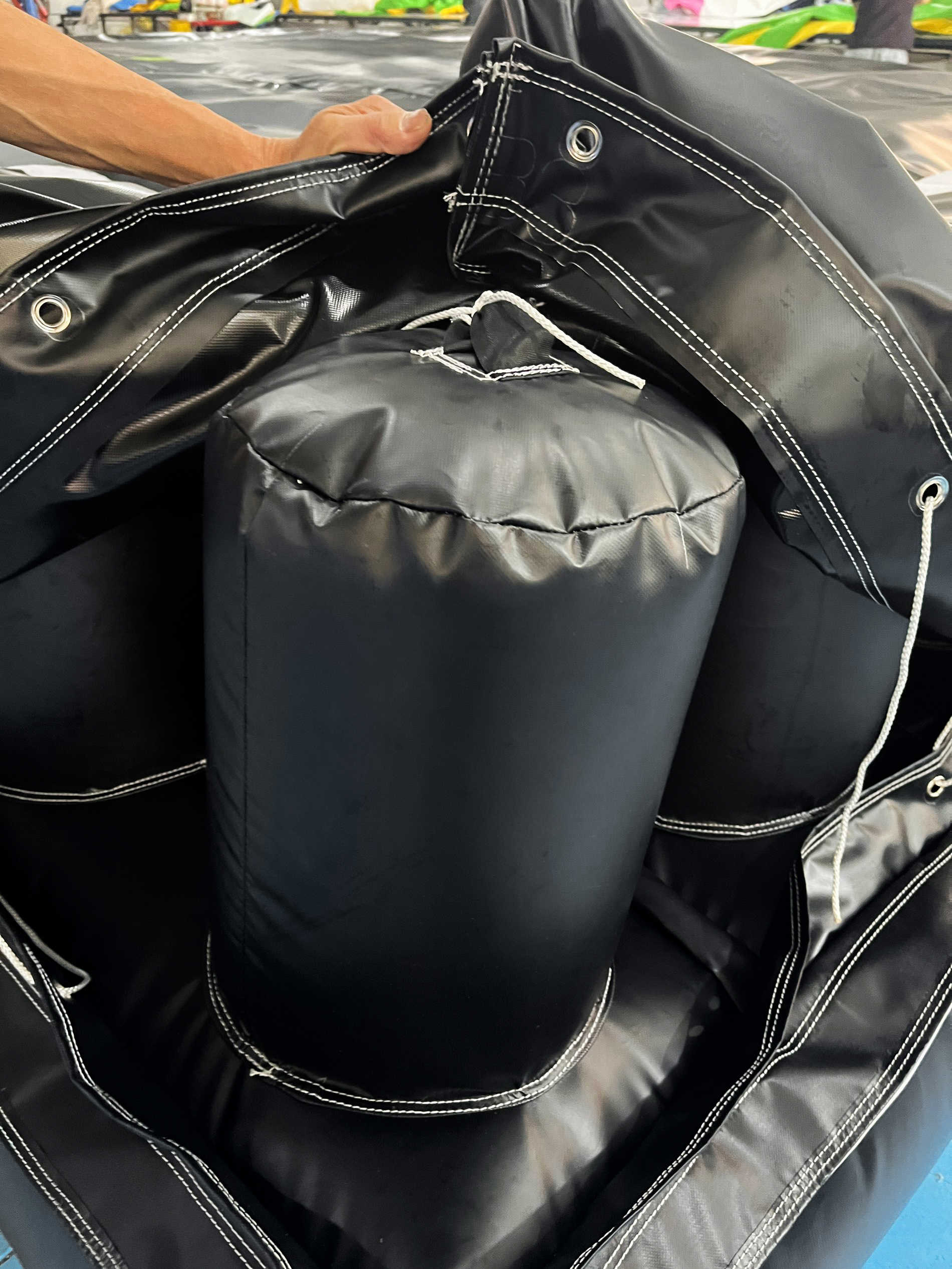 Подушка легко перевозится в сдутом виде в специальной сумке. Для дальних перевозок можно использовать дополнительную защитную обрешетку (деревянный или фанерный ящик), чтобы исключить повреждения. Такая мобильность особенно ценна для организаторов мероприятий, фестивалей и шоу, где оборудование требуется часто перемещать.