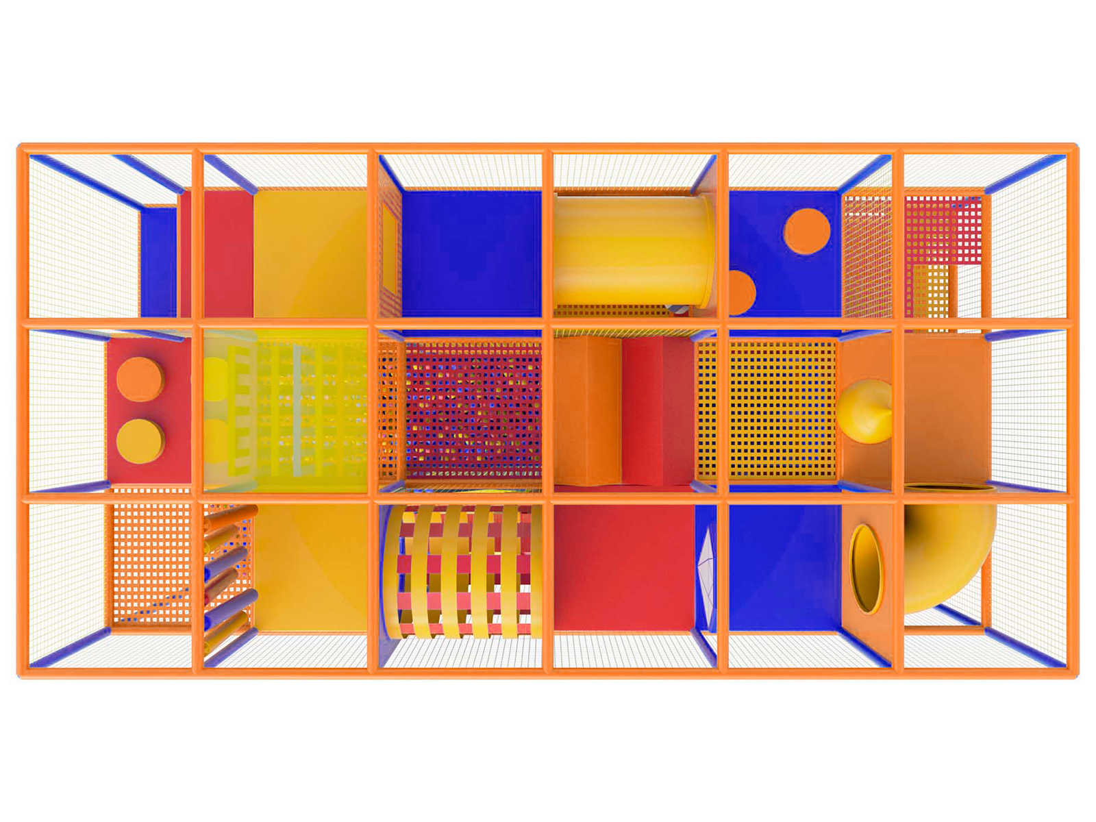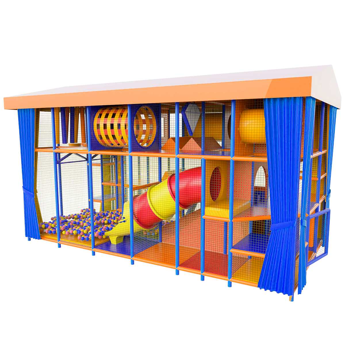 «Мандарин» — это детский лабиринт с крышей, рассчитанный на активную игру и высокую проходимость. Конструкция занимает площадь 27,2 м² и при этом может вместить до 12 детей одновременно, не создавая ощущения тесноты. Это делает его идеальным решением для коммерческих площадок, где важно не просто привлечь внимание, но и справиться с потоком гостей без потери качества отдыха.