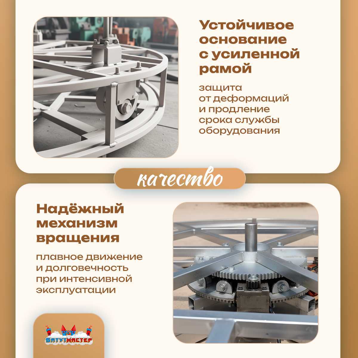 - Плавность движения: Благодаря надежному механизму вращения карусель работает без рывков, обеспечивая безопасное катание.