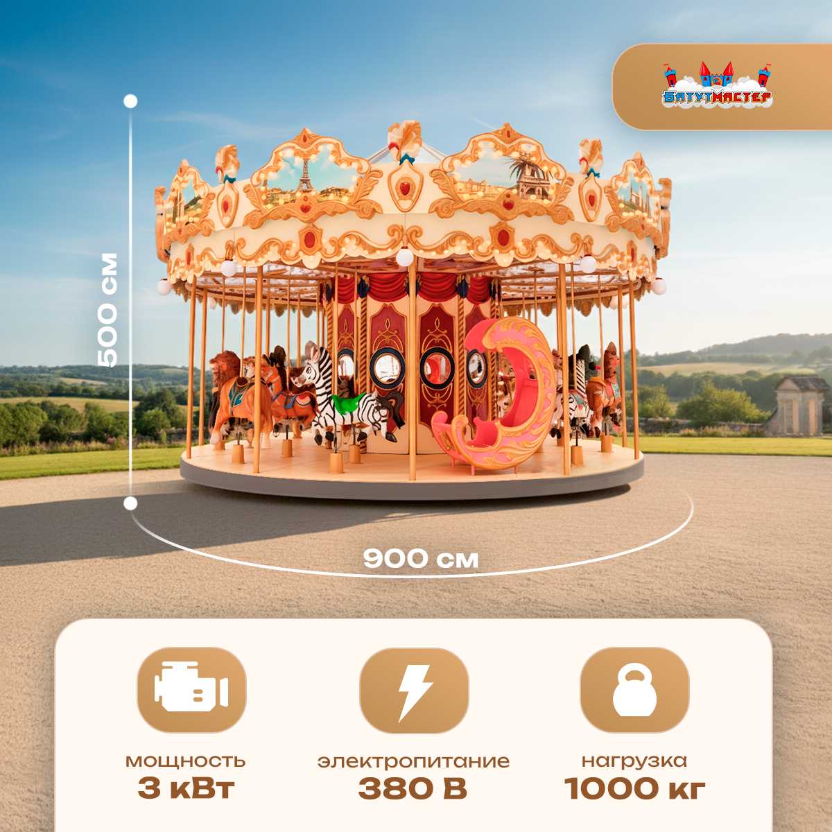 - Количество мест: 16 мест для комфортного катания на карусели сразу несколькими гостями.