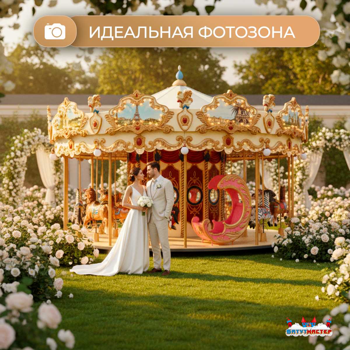 - Тематические парки и аттракционы: Это отличный вариант для свадеб в тематических парках, где карусель станет ярким элементом торжества.