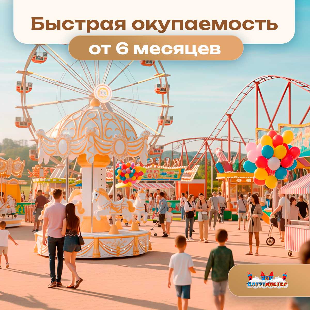 Карусель «Сияние» создана для того, чтобы обеспечить комфорт и безопасность вашим гостям, а её компактные размеры делают её подходящей для различных площадок.