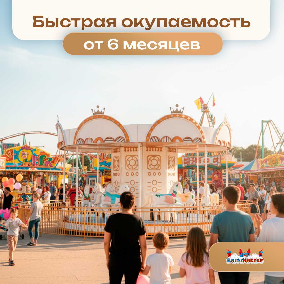 - Световые эффекты: LED подсветка не только придает магическую атмосферу, но и превращает карусель в яркое украшение на фоне вечернего неба.