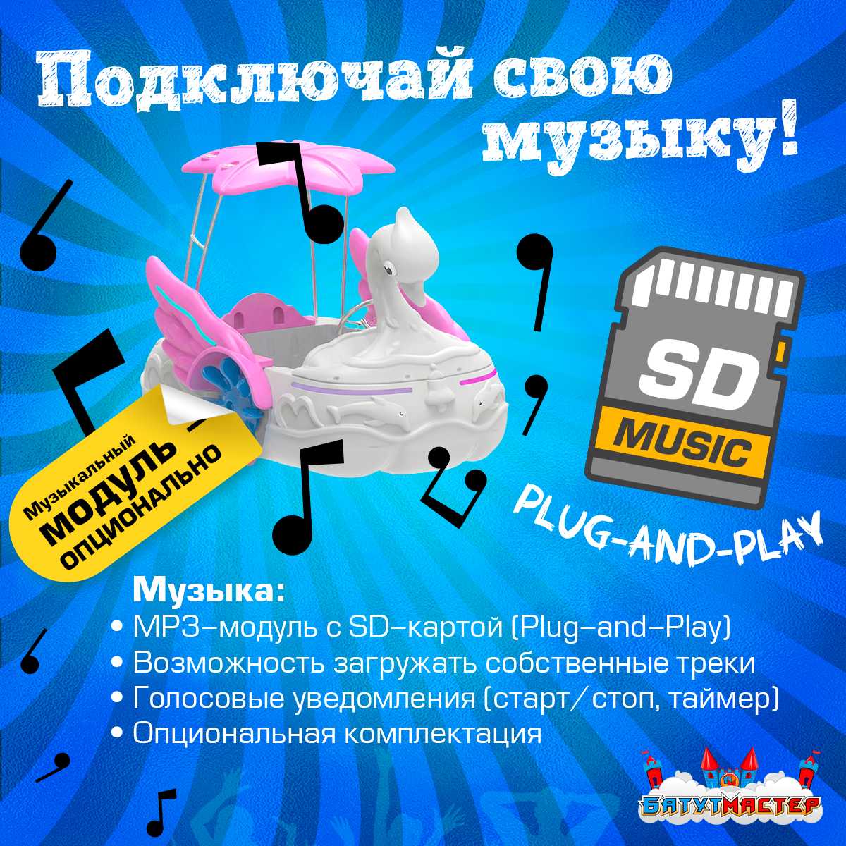 🎵 Музыкальный модуль с SD-картой — загружайте любимые треки и создавайте атмосферу праздника.