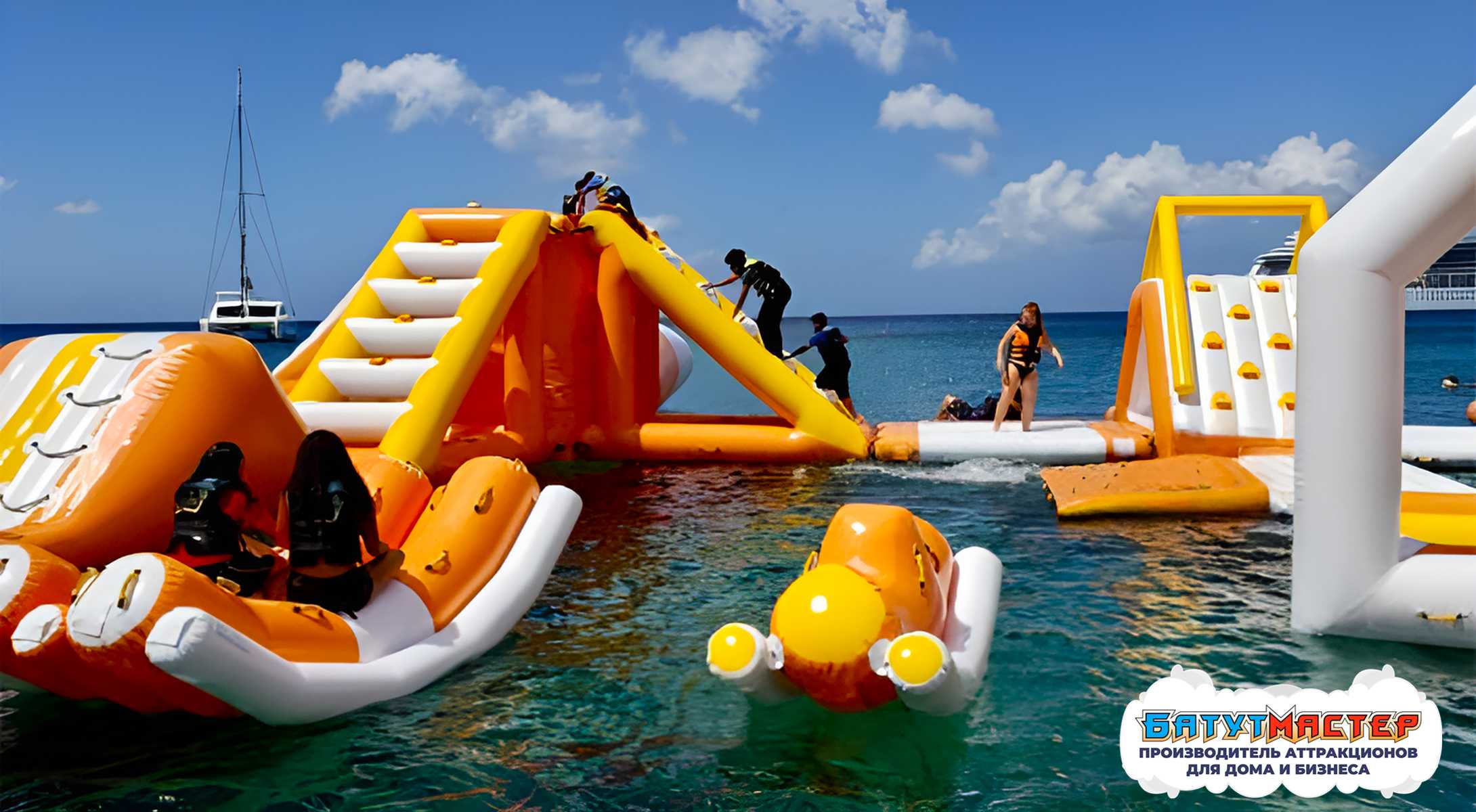 Надувной аквапарк может быть использован в озере, речке, большом бассейне или море!