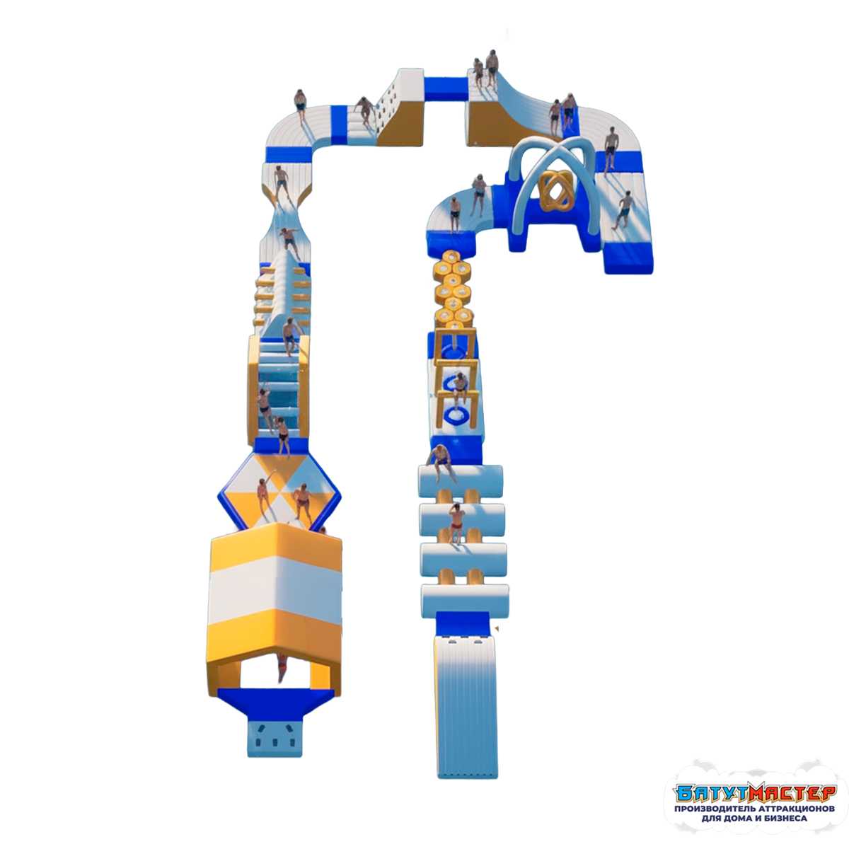 Это уникальное сооружение водных аттракционов, состоящее из нескольких модулей. Надувные модули собираются в любой последовательности, создавая персональный водный комплекс.