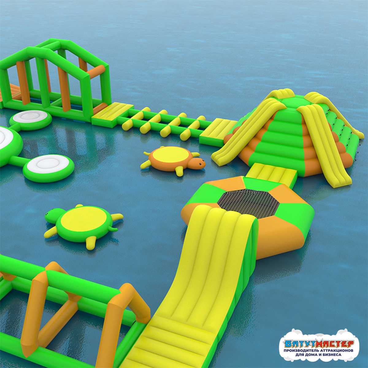 Это уникальное сооружение водных аттракционов, состоящее из нескольких модулей. Надувные модули собираются в любой последовательности, создавая персональный водный комплекс.