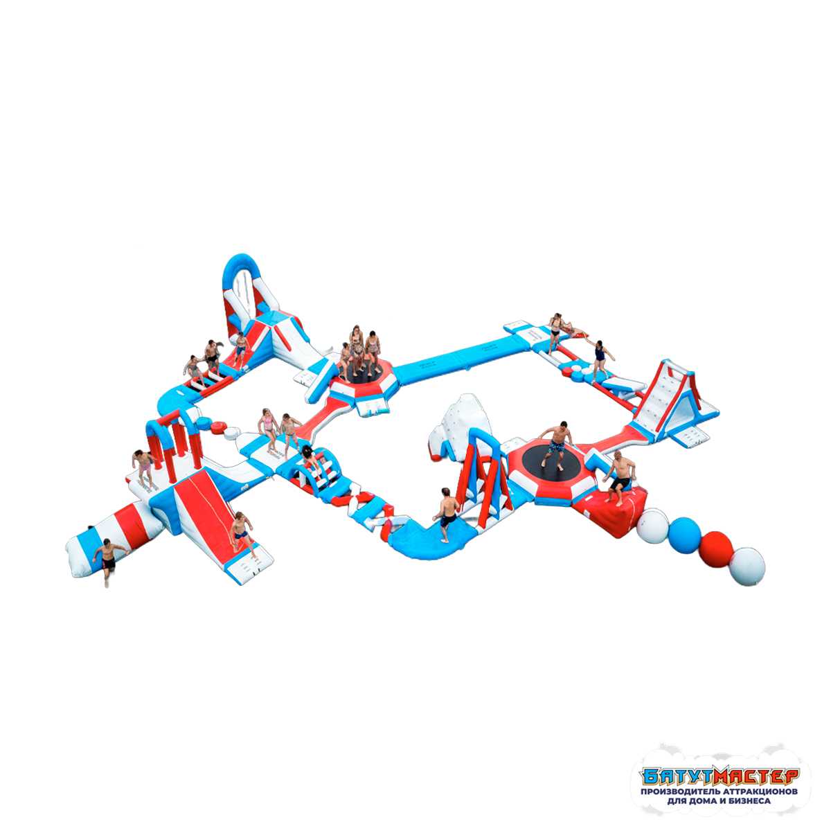 Это уникальное сооружение водных аттракционов, состоящее из нескольких модулей. Надувные модули собираются в любой последовательности, создавая персональный водный комплекс.