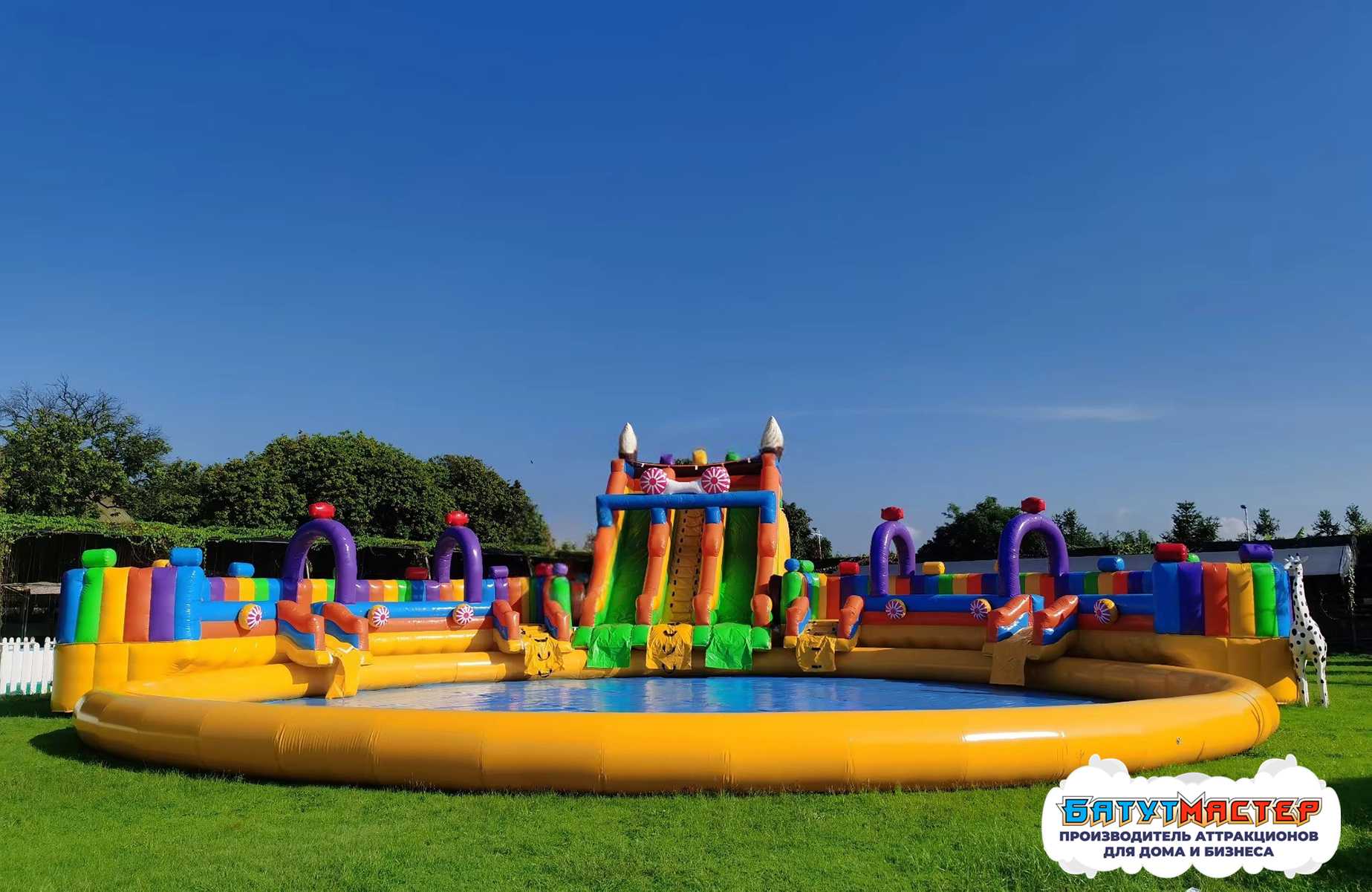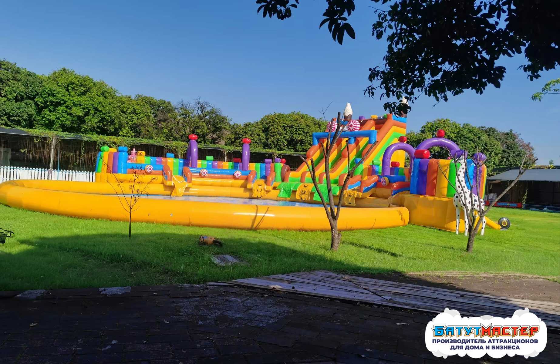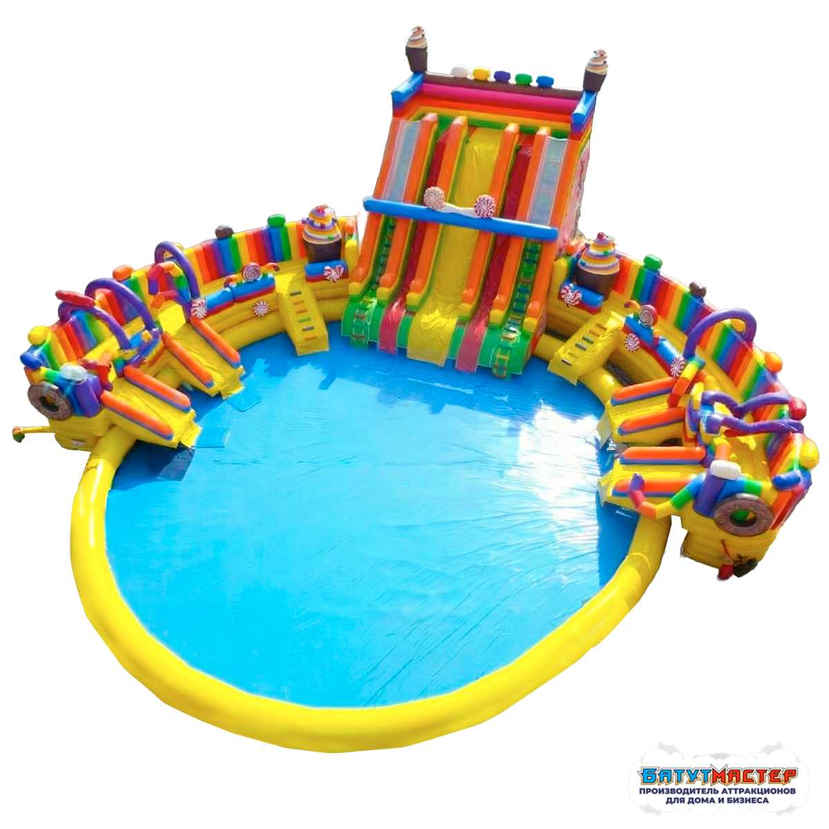 Аквапарк «Сладкая страна» — это настоящая сказка, воплощенная в надувном парке. Созданный для того, чтобы приносить радость детям и взрослым, он привлекает внимание яркими цветами и уникальными аттракционами. Просторный бассейн и высокие горки обещают увлекательные приключения для всех, кто решит погрузиться в водную атмосферу веселья! Не важно, хотите ли вы просто поплавать или испытать острые ощущения на горках — здесь найдется развлечение для каждого!
