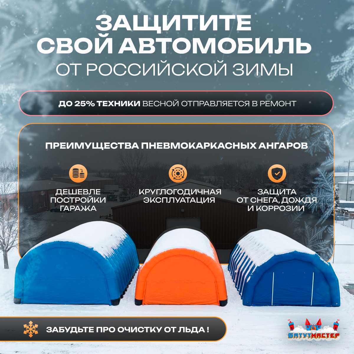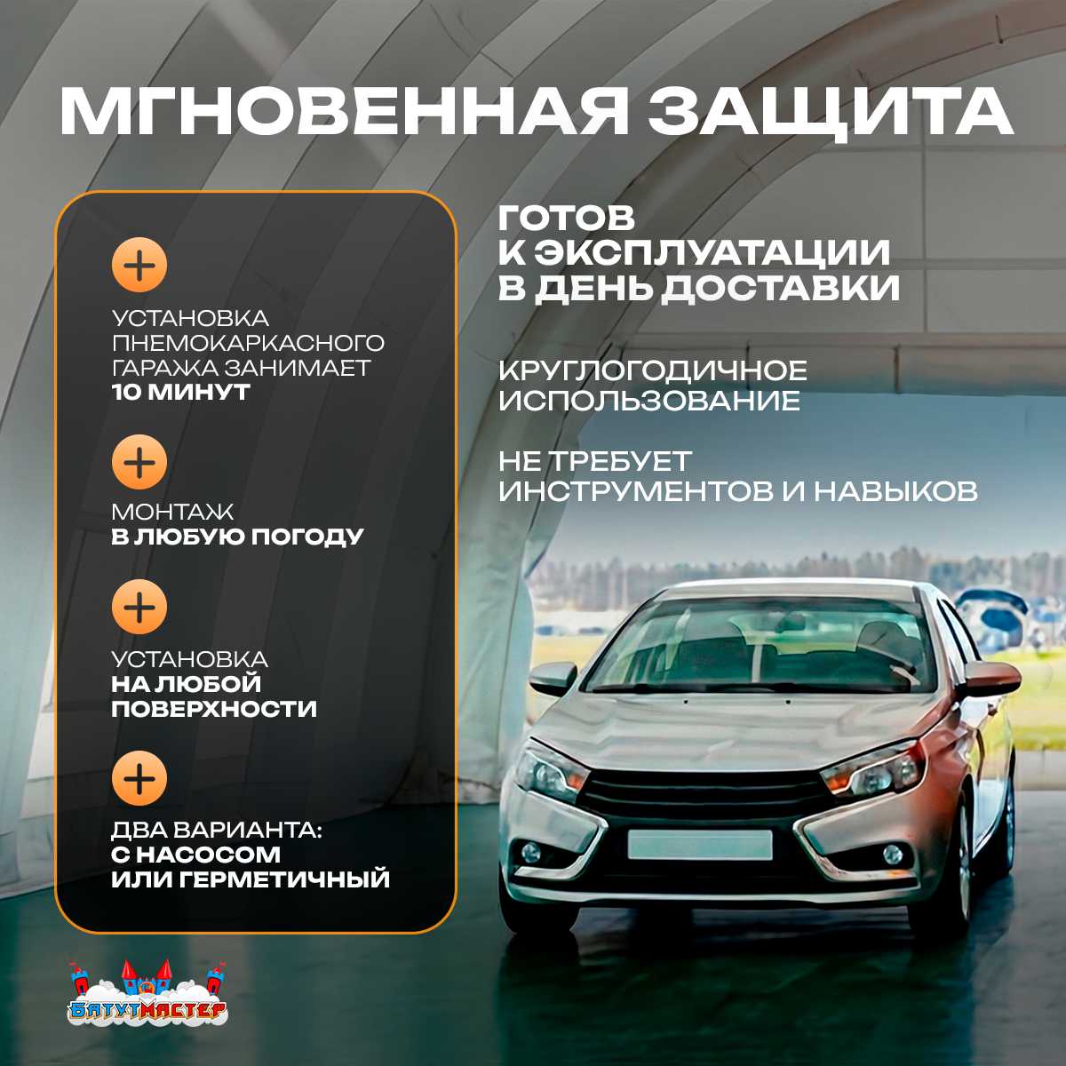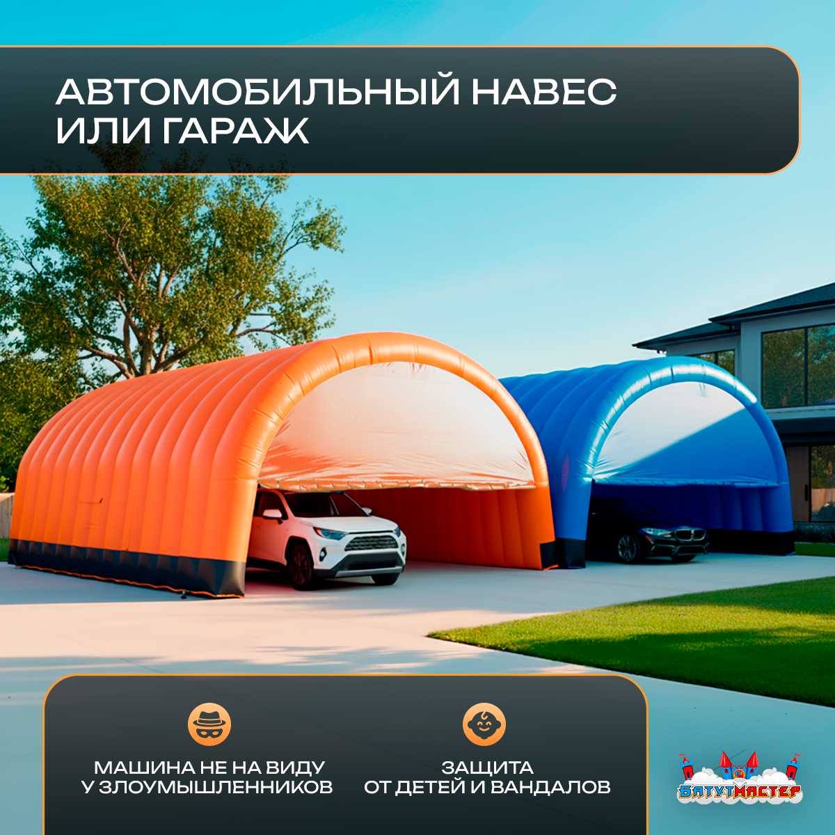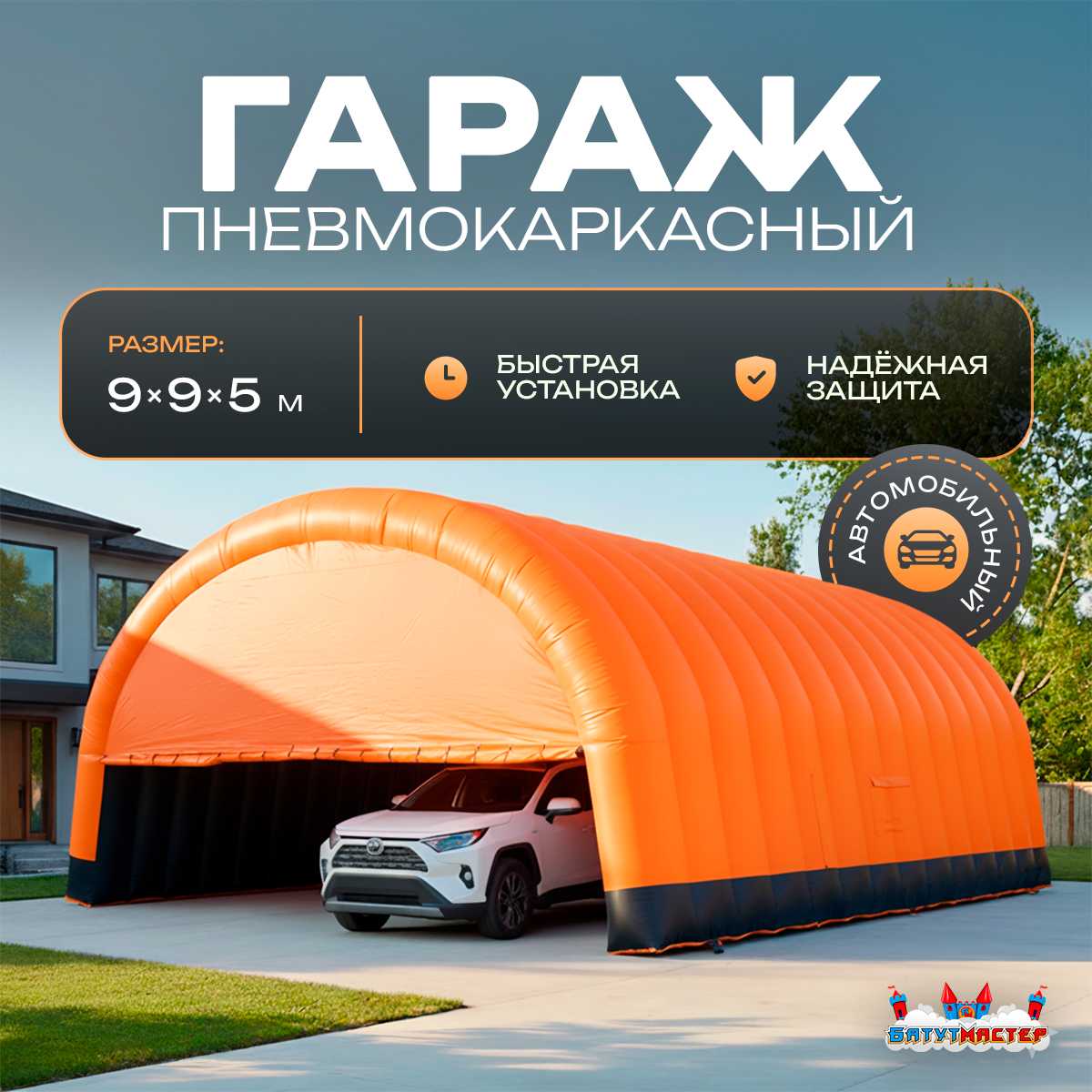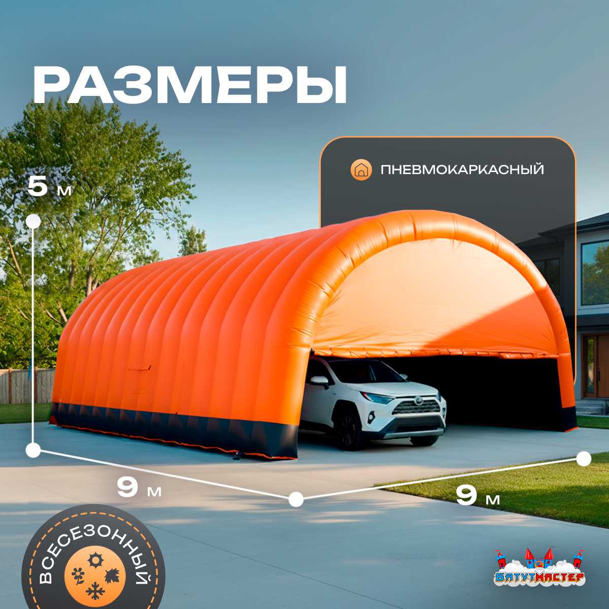 🛒 Гараж надувной для автомобилей «Янтарь» 9х9х5 м — из ПВХ, оранжевый купить за 0.0 ₽ | 🚚 Оплата при получении!