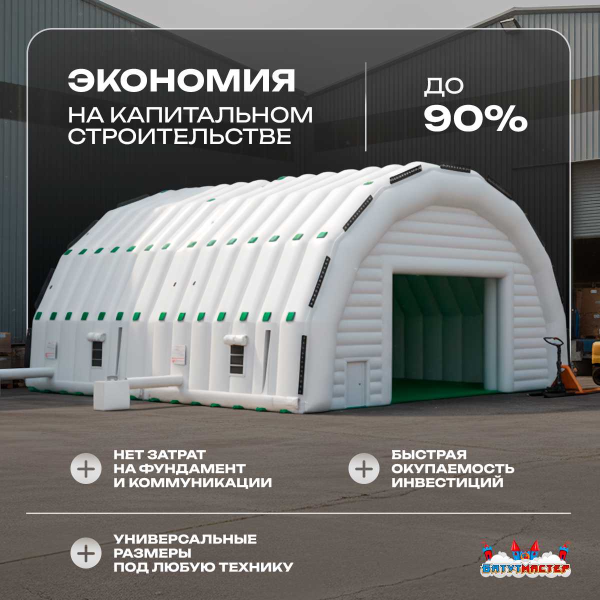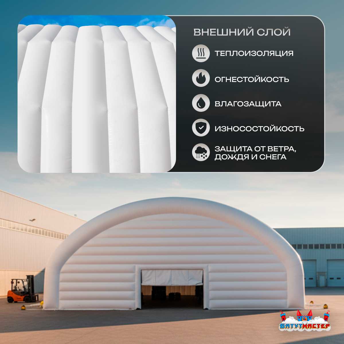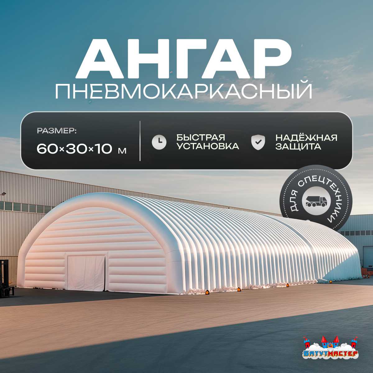 🛒 Ангар надувной для спецтехники «Вега 3» 60х30х10 м — из ПВХ, белый купить за 0.0 ₽ | 🚚 Оплата при получении!
