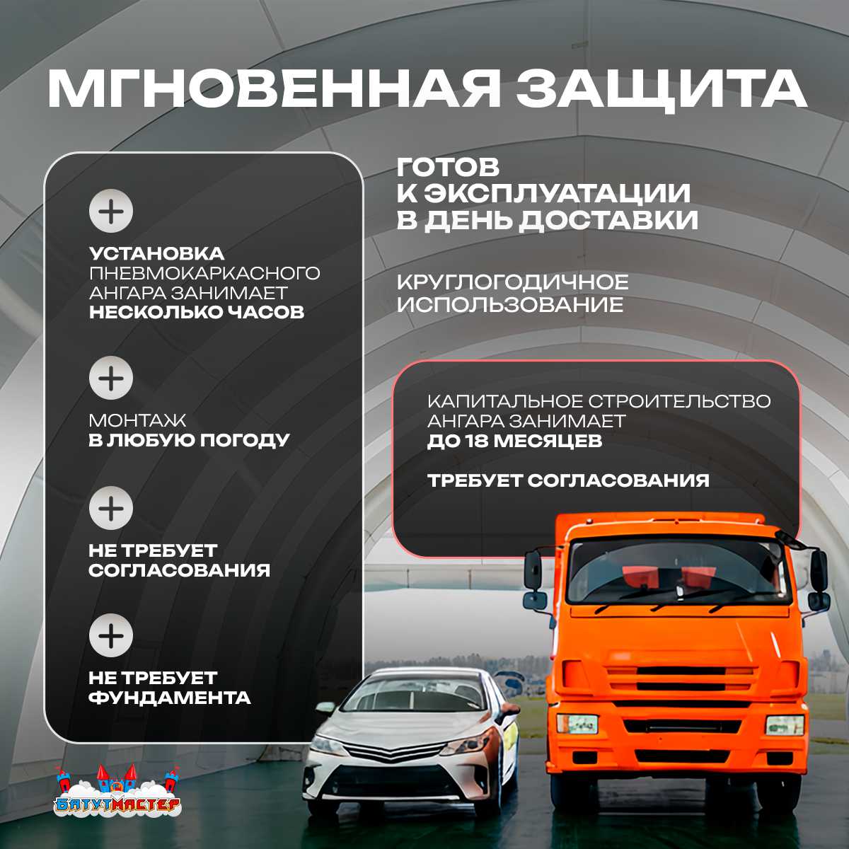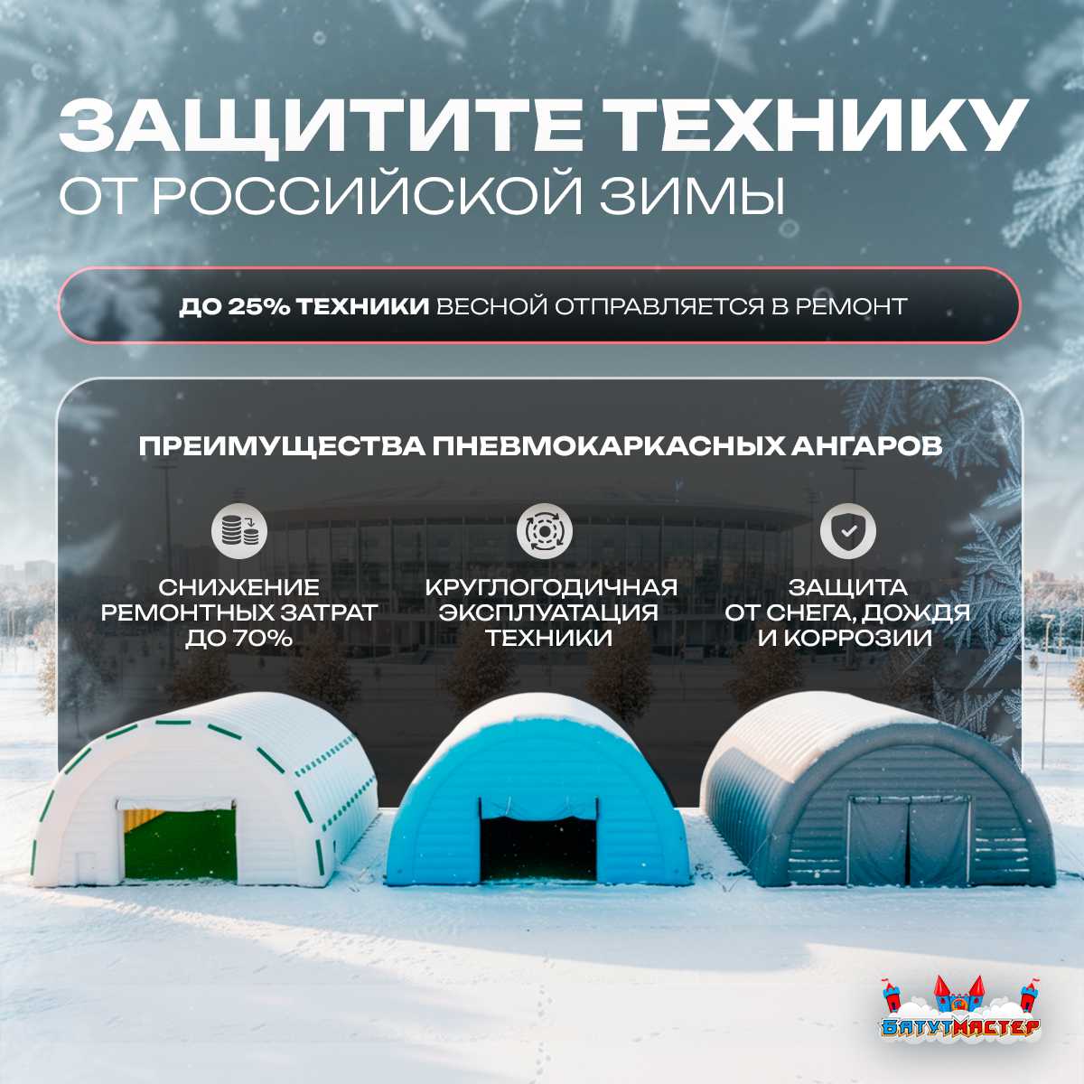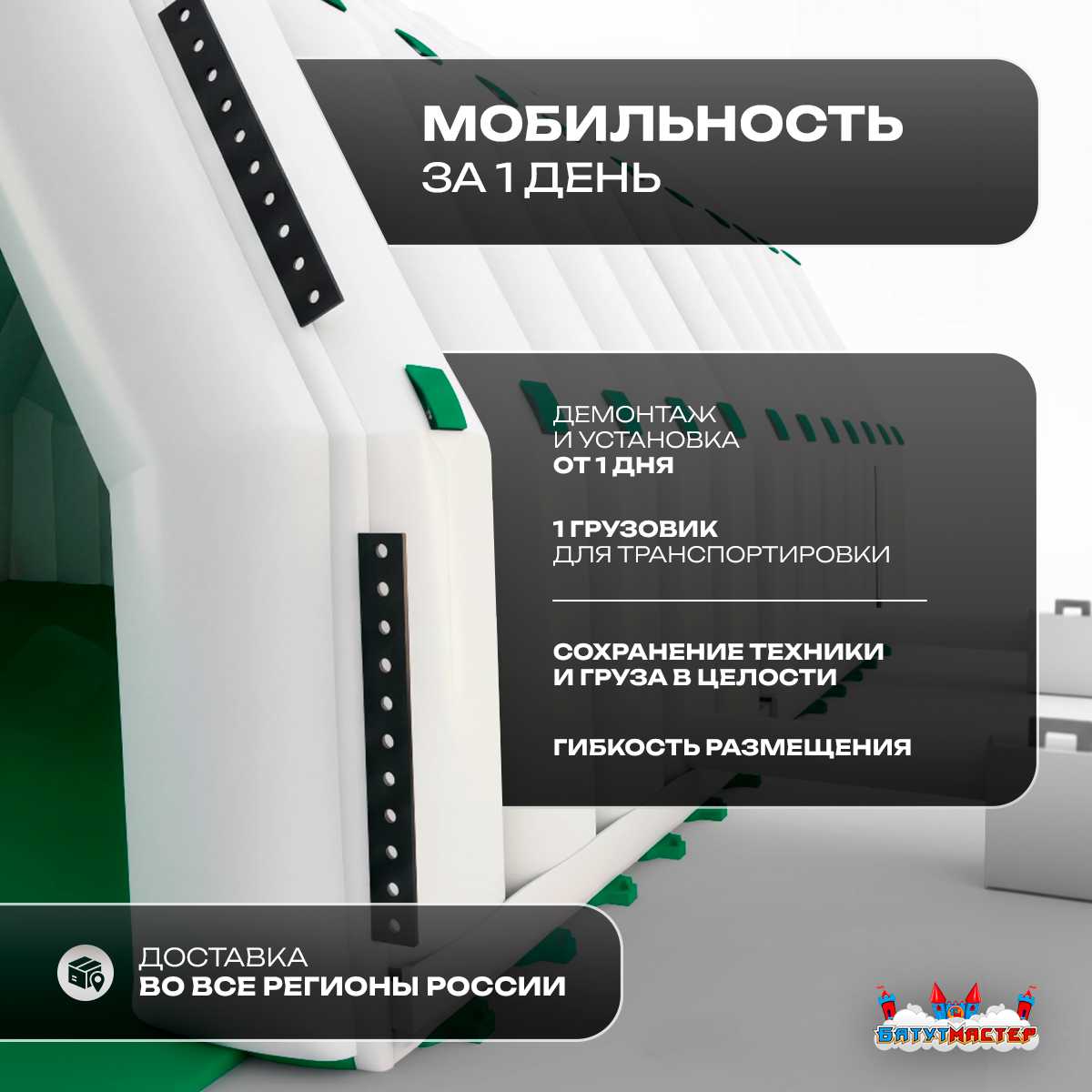 🛒 Ангар надувной для спецтехники «Вега 3» 60х30х10 м — из ПВХ, белый купить за 0.0 ₽ | 🚚 Оплата при получении!