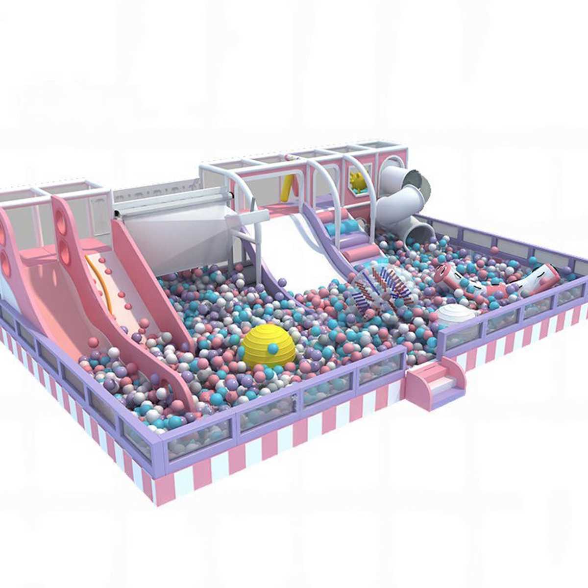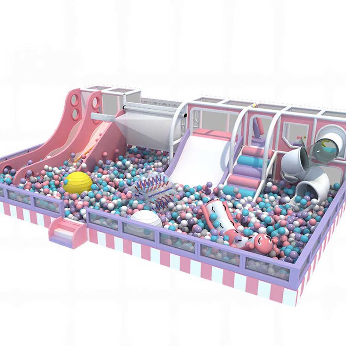 Игровой комплекс с сухим бассейном «Волшебный Городок» 6x5x2,8 выглядит как отдельный сказочный остров внутри помещения. Полупрозрачные ограждения, мягкие борта и насыщенное наполнение шариками создают ощущение лёгкости и динамики. Дети воспринимают пространство как настоящий мир приключений, а родители видят аккуратную, продуманную и безопасную игровую зону.