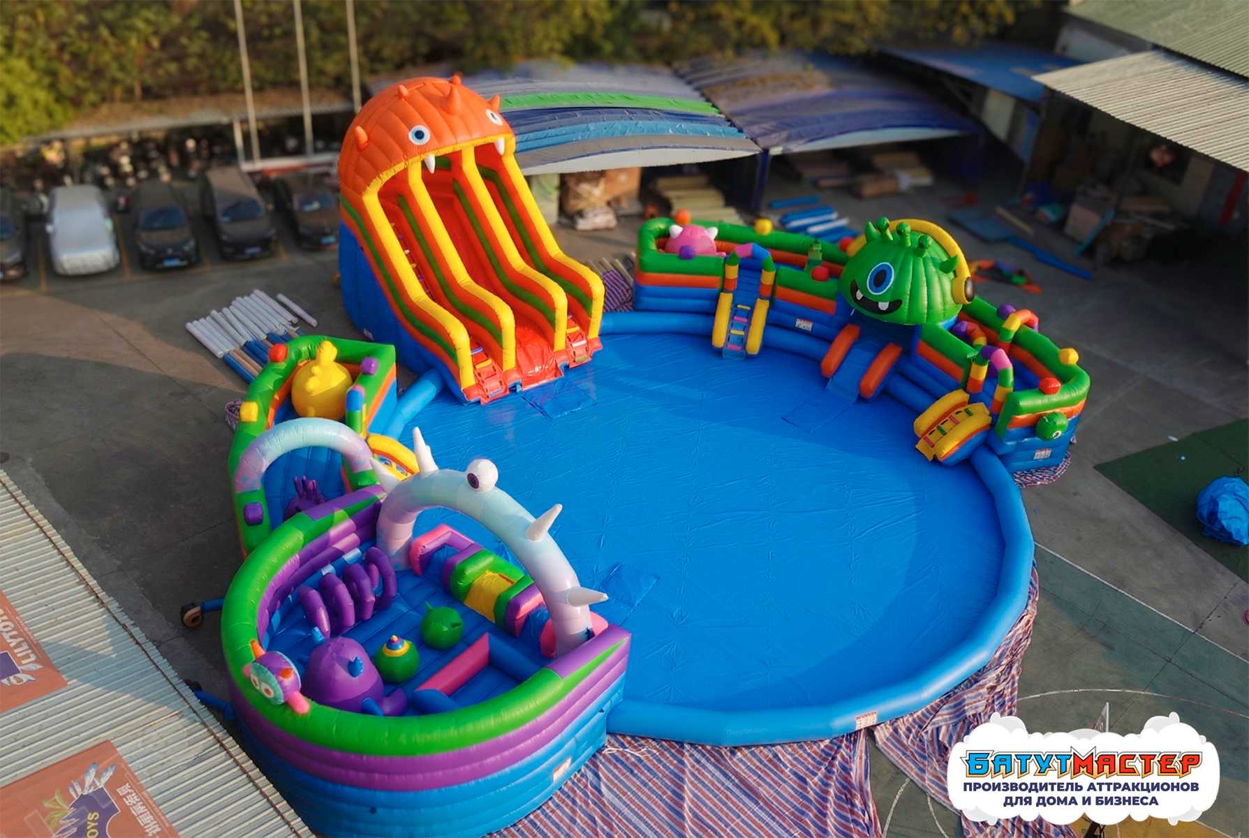 - Водные горки: Страна Монстриков не обходится без своих горок! С высотой 4 метра и 4 захватывающими скатами, горки привлекут внимание всех любителей острых ощущений. Они не только огромные, но и безопасные, что делает их идеальными для использования детьми и взрослыми.