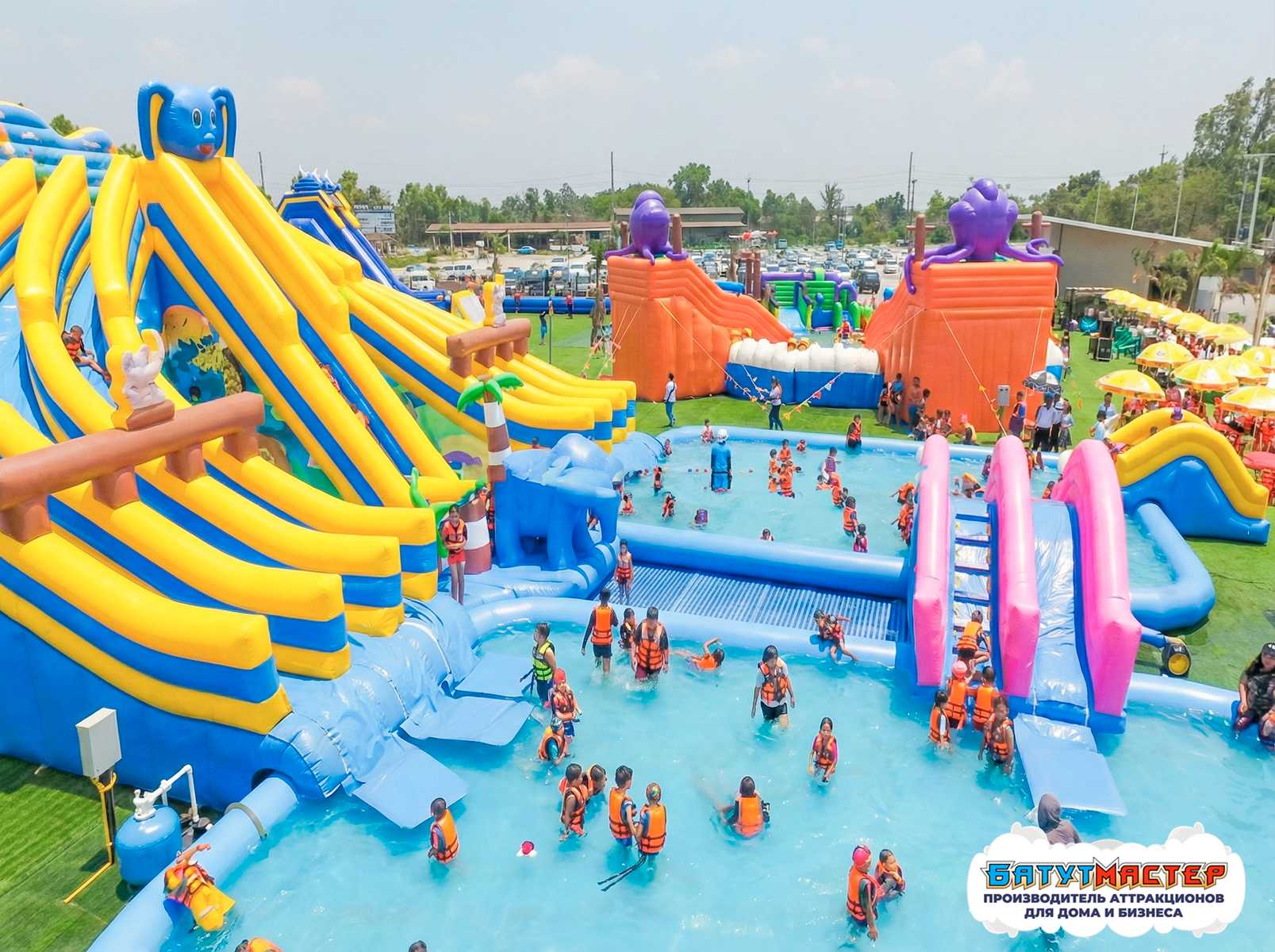 Надувной аквапарк с бассейнами и горками «Весёлый Слоник», 30×20×8 м