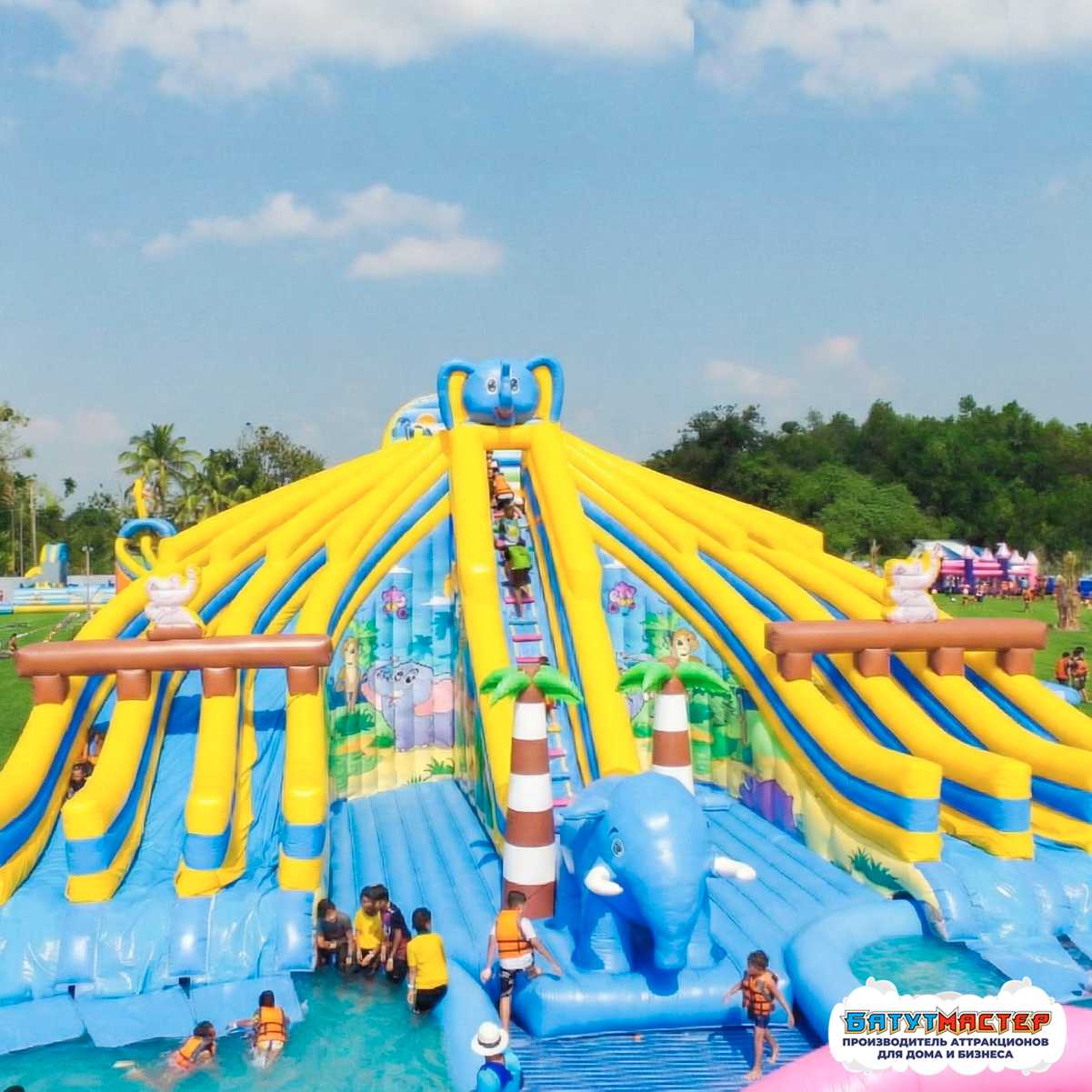 🛒 Надувной аквапарк с бассейнами и горками «Весёлый Слоник», 30×20×8 м купить за 0.0 ₽ | 🚚 Оплата при получении!