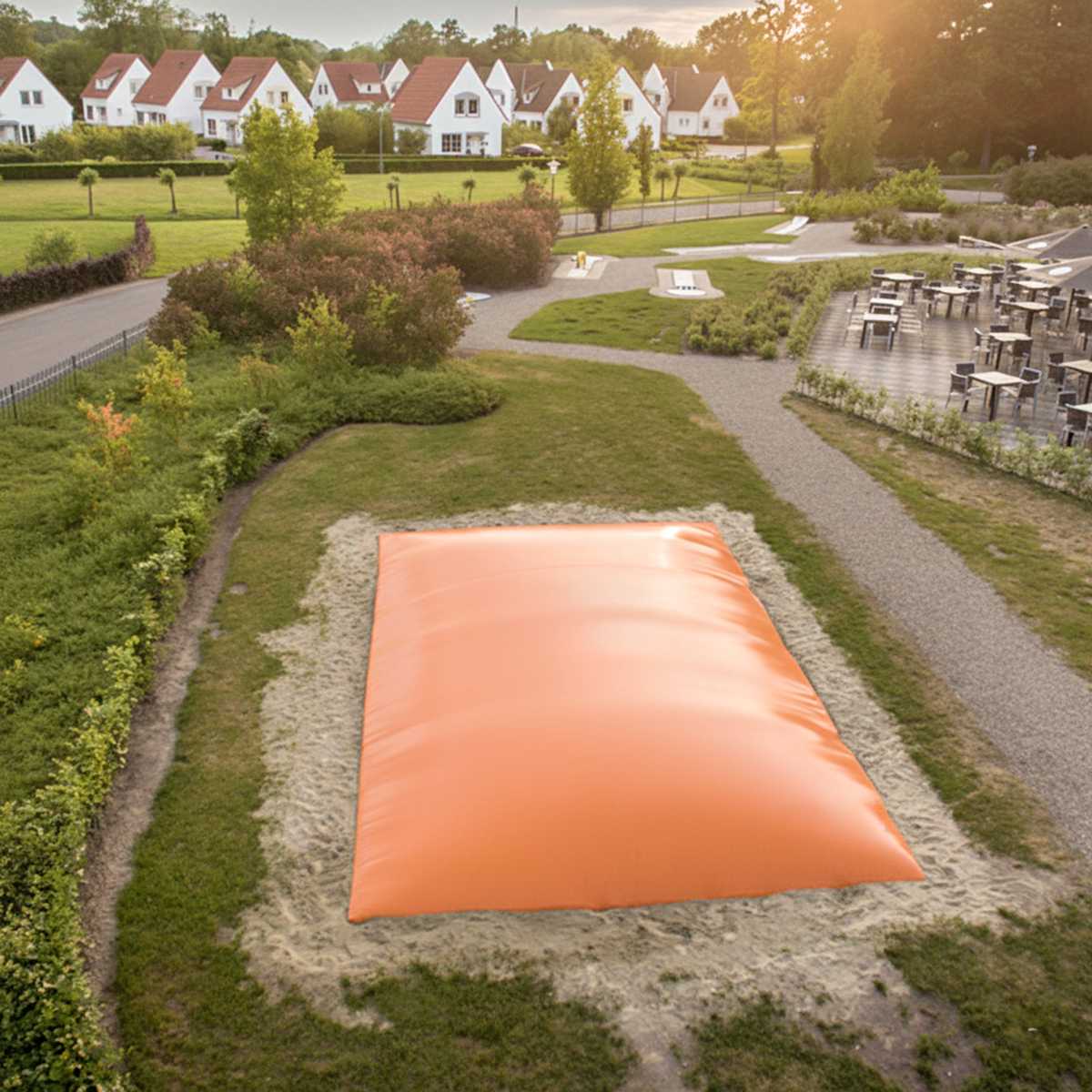Надувная подушка для установки в грунт «Апельсин» 10x8x2 м моментально привлекает внимание: яркий, насыщенный цвет, безопасная зона для прыжков и развлечений. Она создана для бизнеса, которому важно быстро развернуть площадку активности — будь то детский праздник, городской фестиваль или постоянная зона отдыха в парке.