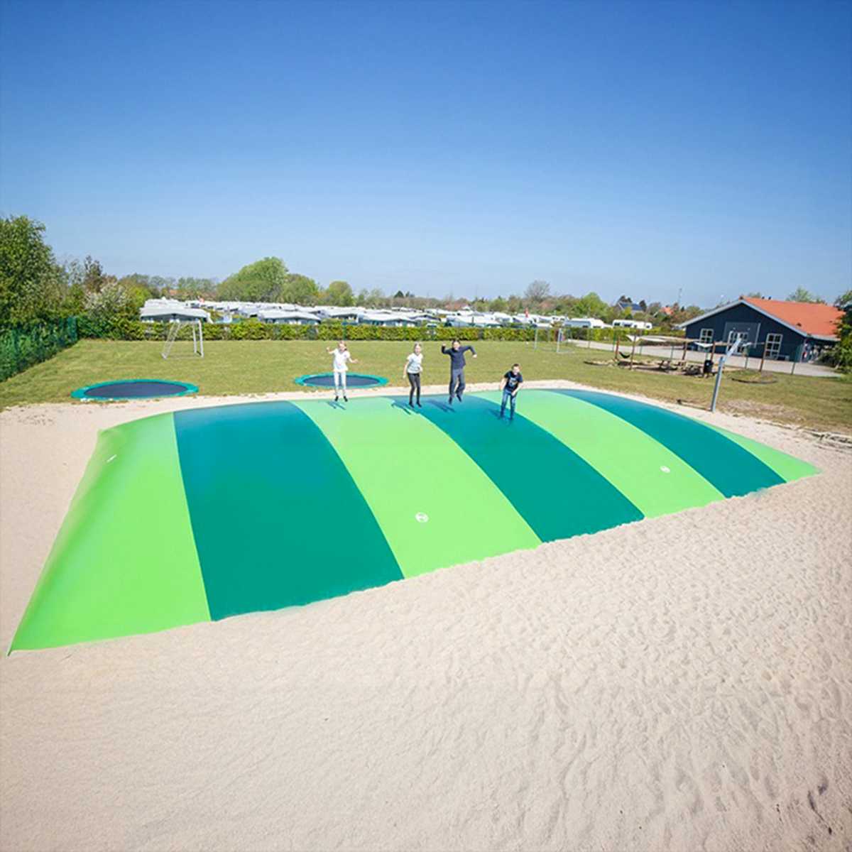Хотите удивить гостей безопасным приземлением? 😉 С подушкой «Изумрудные волны» вы создадите не просто точку притяжения — вы превратите обычное пространство в место радости, движения и ярких эмоций! Эта подушка — ваш союзник в создании безопасной, устойчивой и невероятно привлекательной развлекательной зоны. Установка в грунт делает её идеальной для открытых площадок любого масштаба.