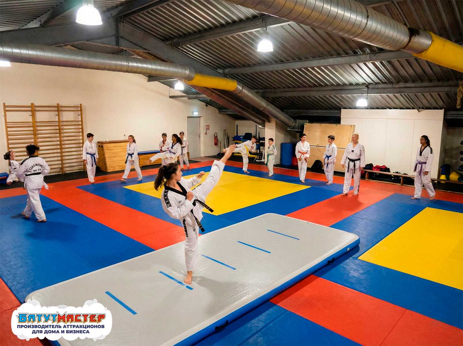 Амортизирующие свойства мата позволяют мягко гасить удары, защищая колени, локти, спину и другие уязвимые части тела. Это особенно важно при выполнении кувырков, сальто, прыжков и ударов в единоборствах. Мат подходит для спортсменов всех возрастов — как для детей, так и для взрослых.