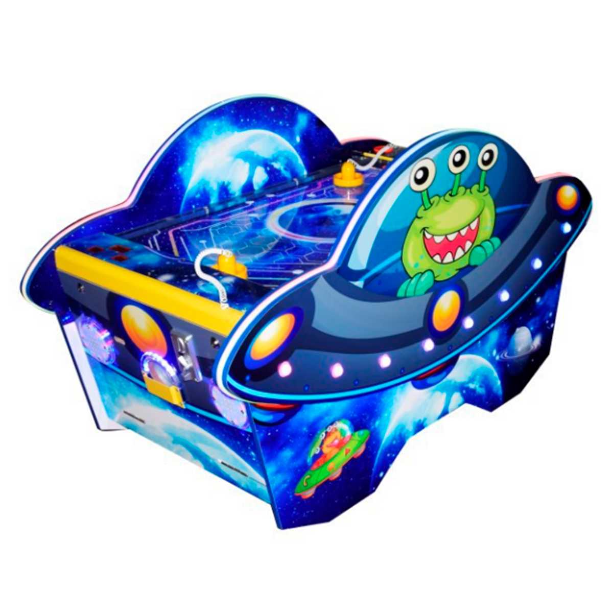 Настольный аэрохоккей «Галактический Удар» — это настоящее межзвёздное приключение в мире активных развлечений. Он создан для того, чтобы не просто развлечь — а по-настоящему увлечь и вовлечь игроков в увлекательную битву за шайбу! Благодаря продуманному дизайну, насыщенной тематике и современным игровым технологиям, он одинаково хорошо вписывается как в атмосферу детских игровых зон, так и в крупные развлекательные комплексы.
